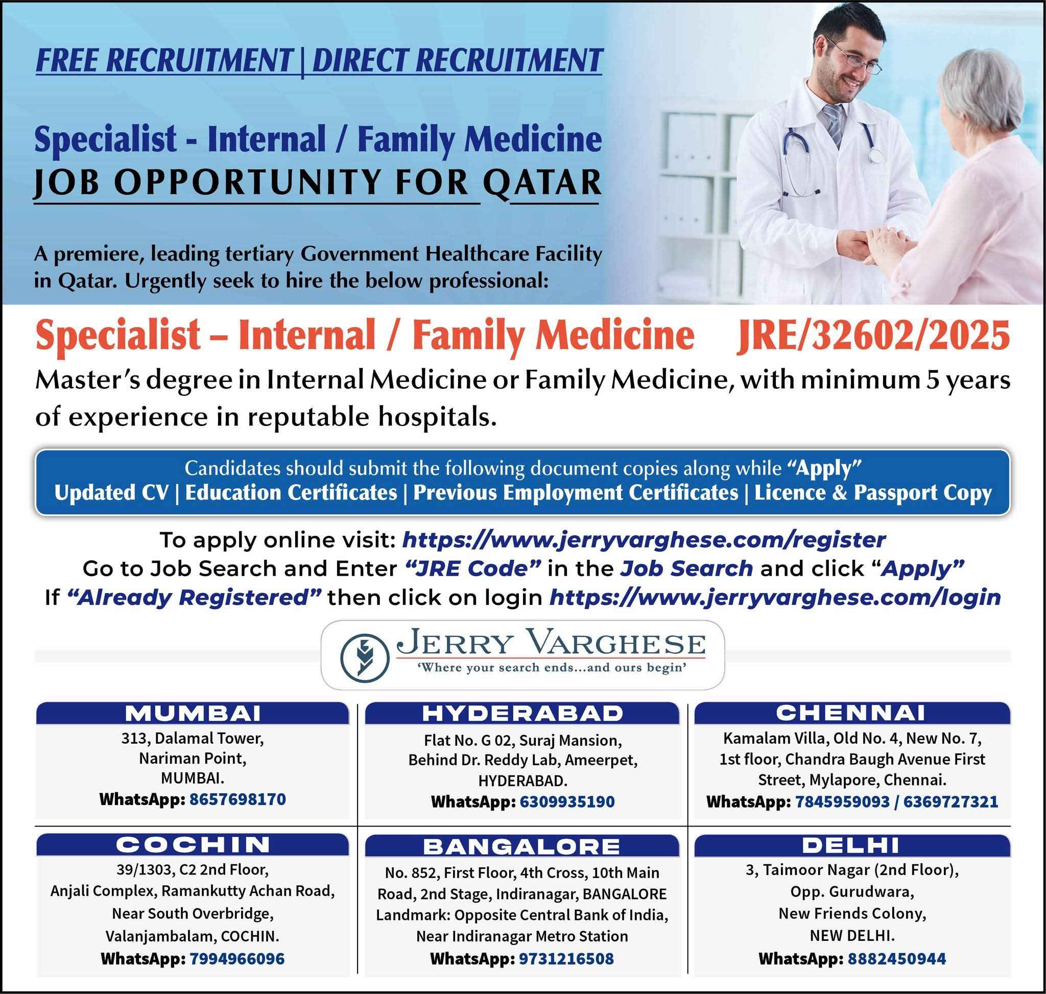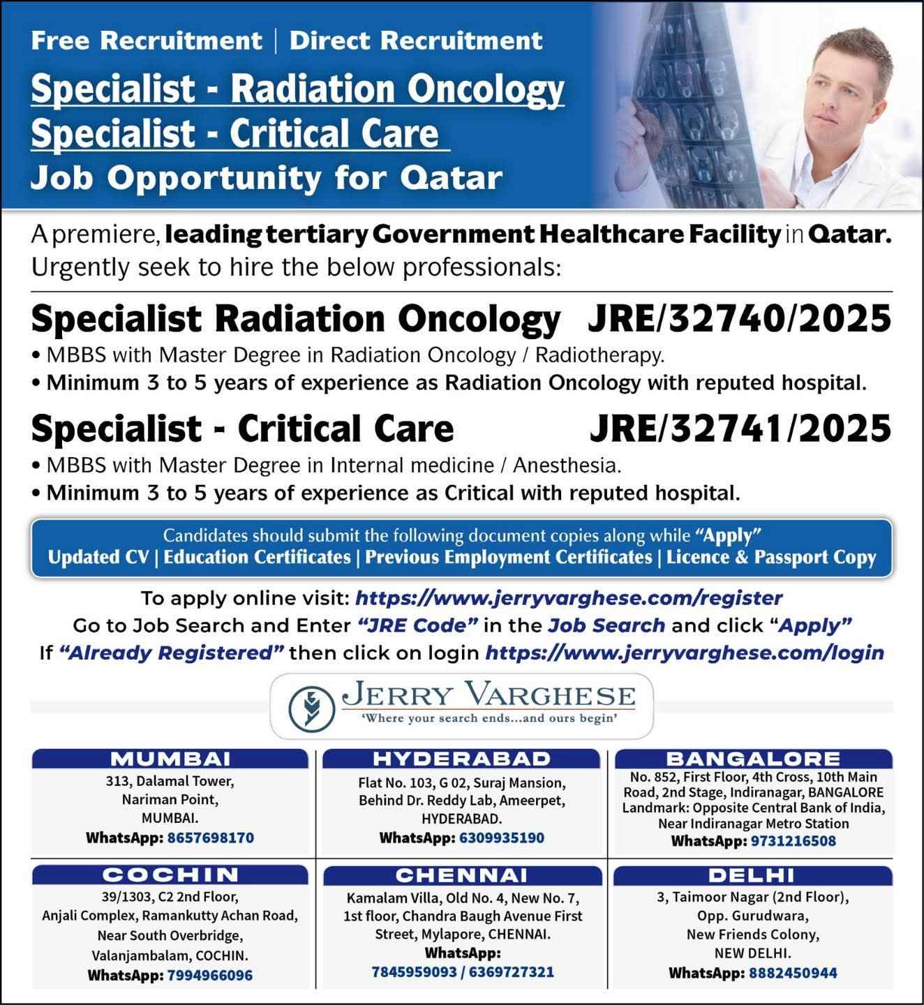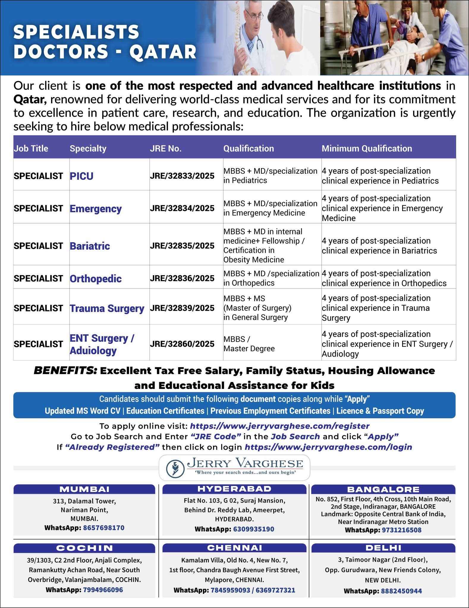 Urgent Requirement SPECIALISTS DOCTORS QATAR