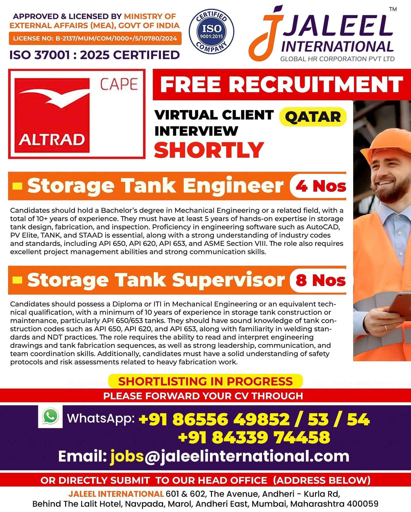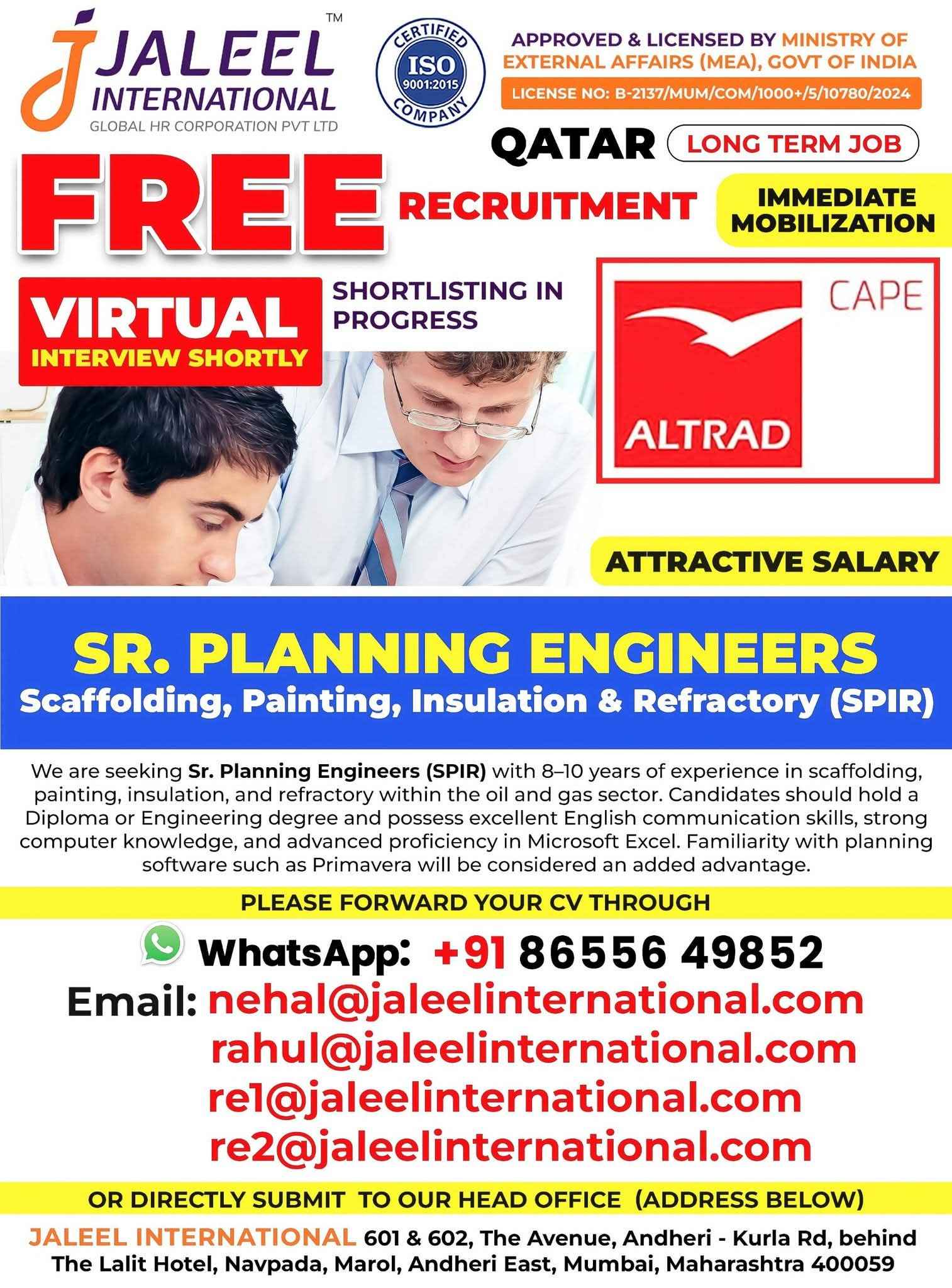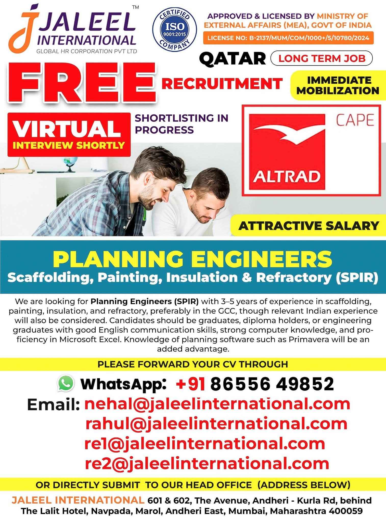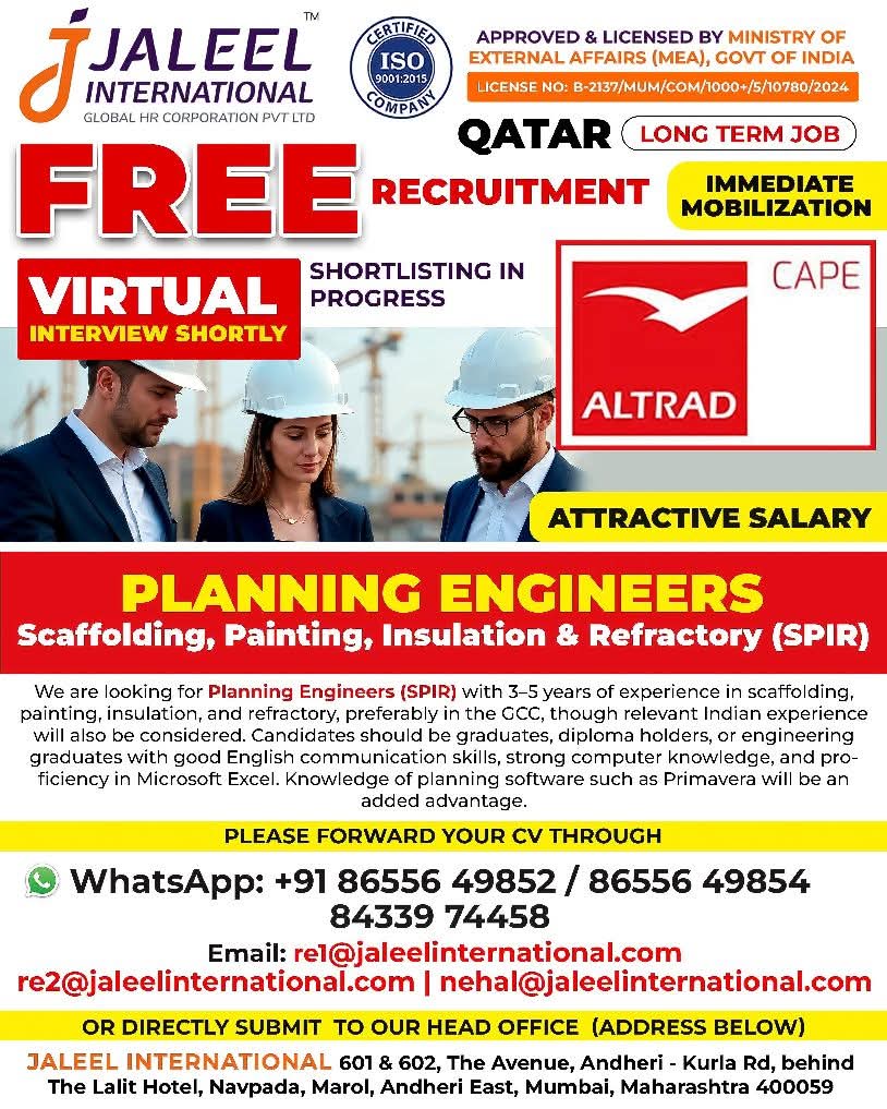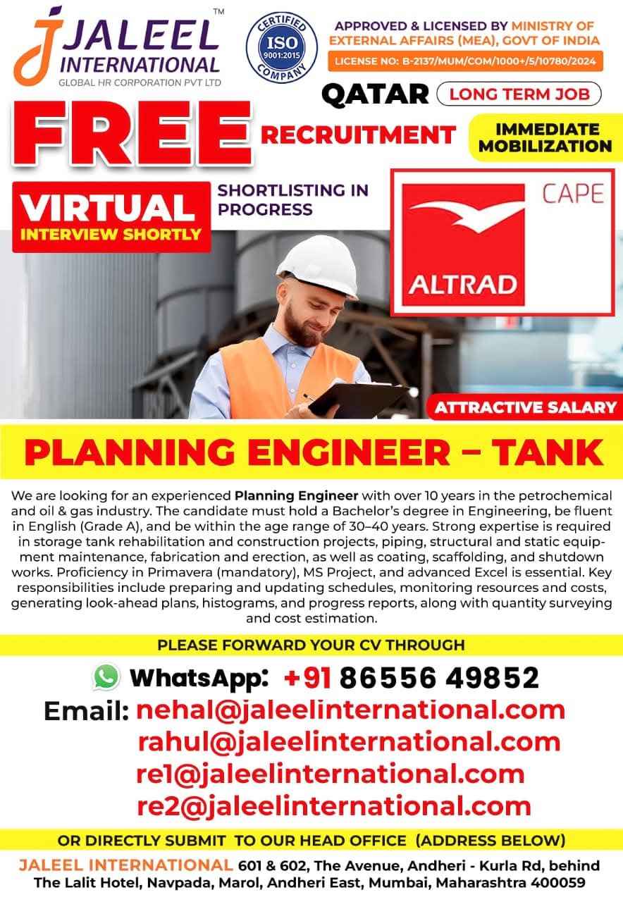QATAR JOB'S An International Company requires for their oil & gas Long Term Project. FREE RECRUITMENT ALTRAD