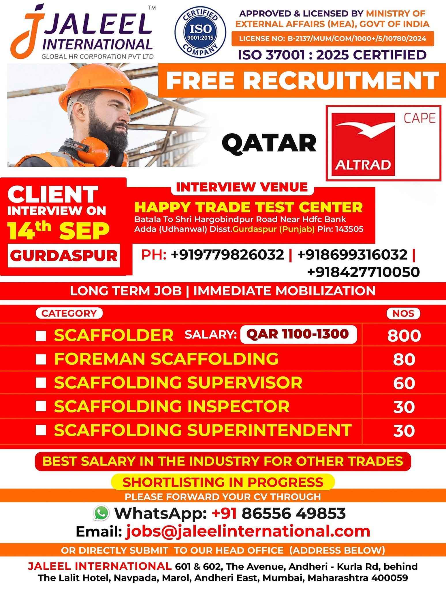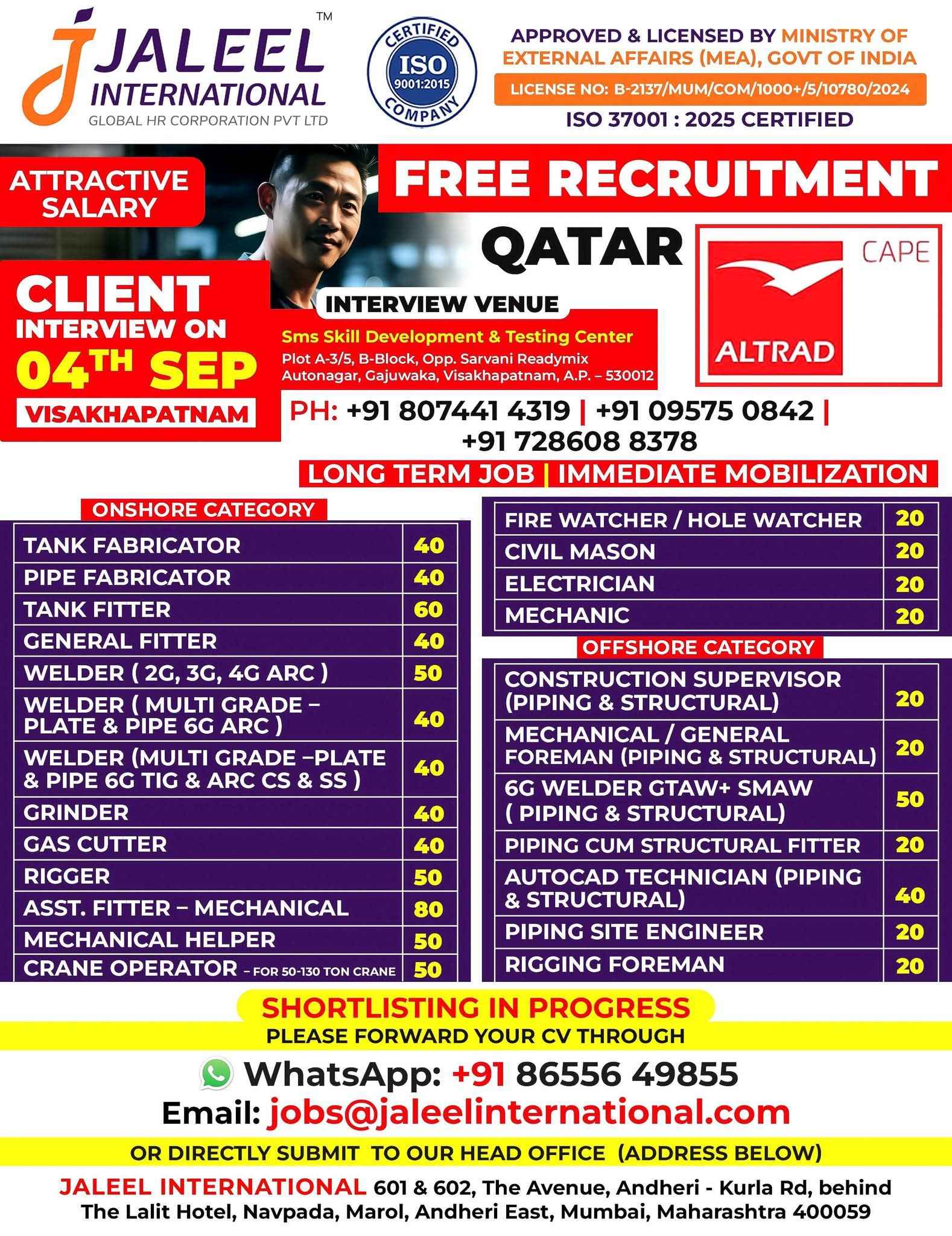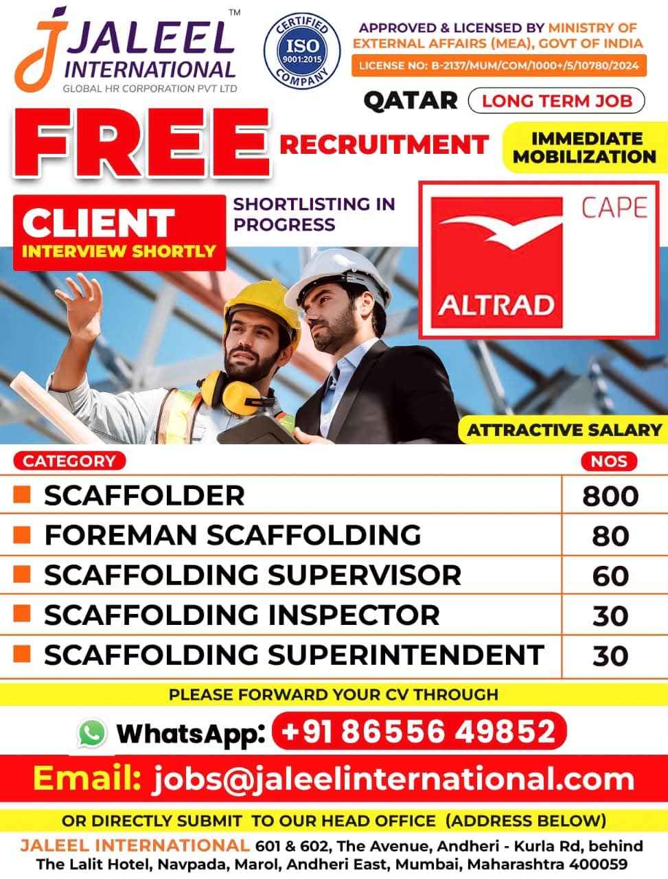 URGENT REQUIREMENT FOR ALTRAD QATAR