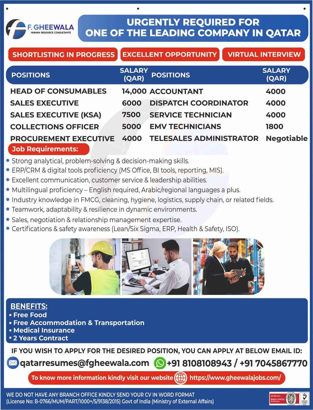 HIRING FOR LEADING COMPANY IN QATAR