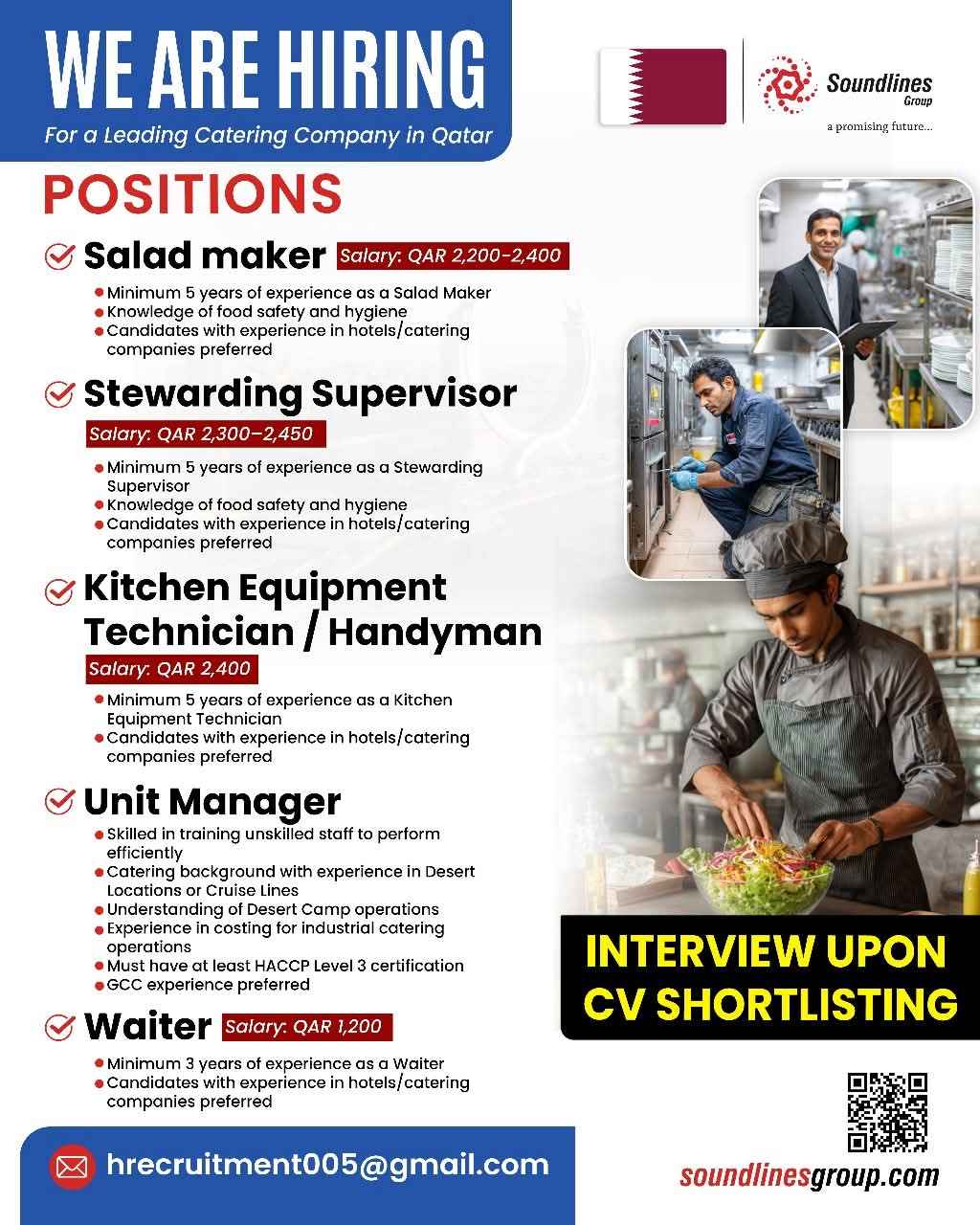 Hiring For a Leading Catering Company in Qatar