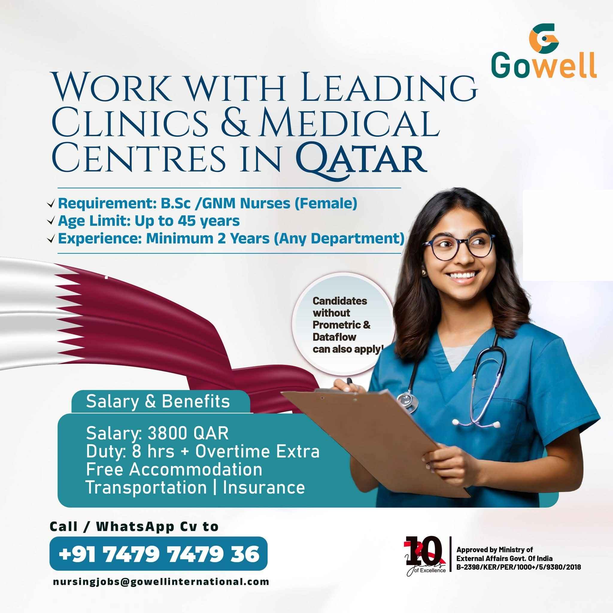 REQUIRED FEMALE NURSES FOR QATAR GOVT.