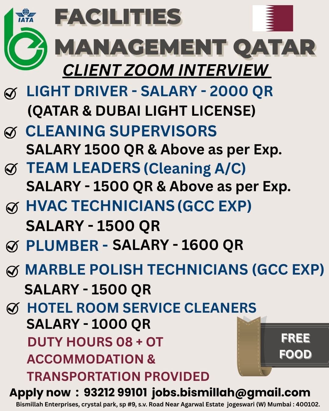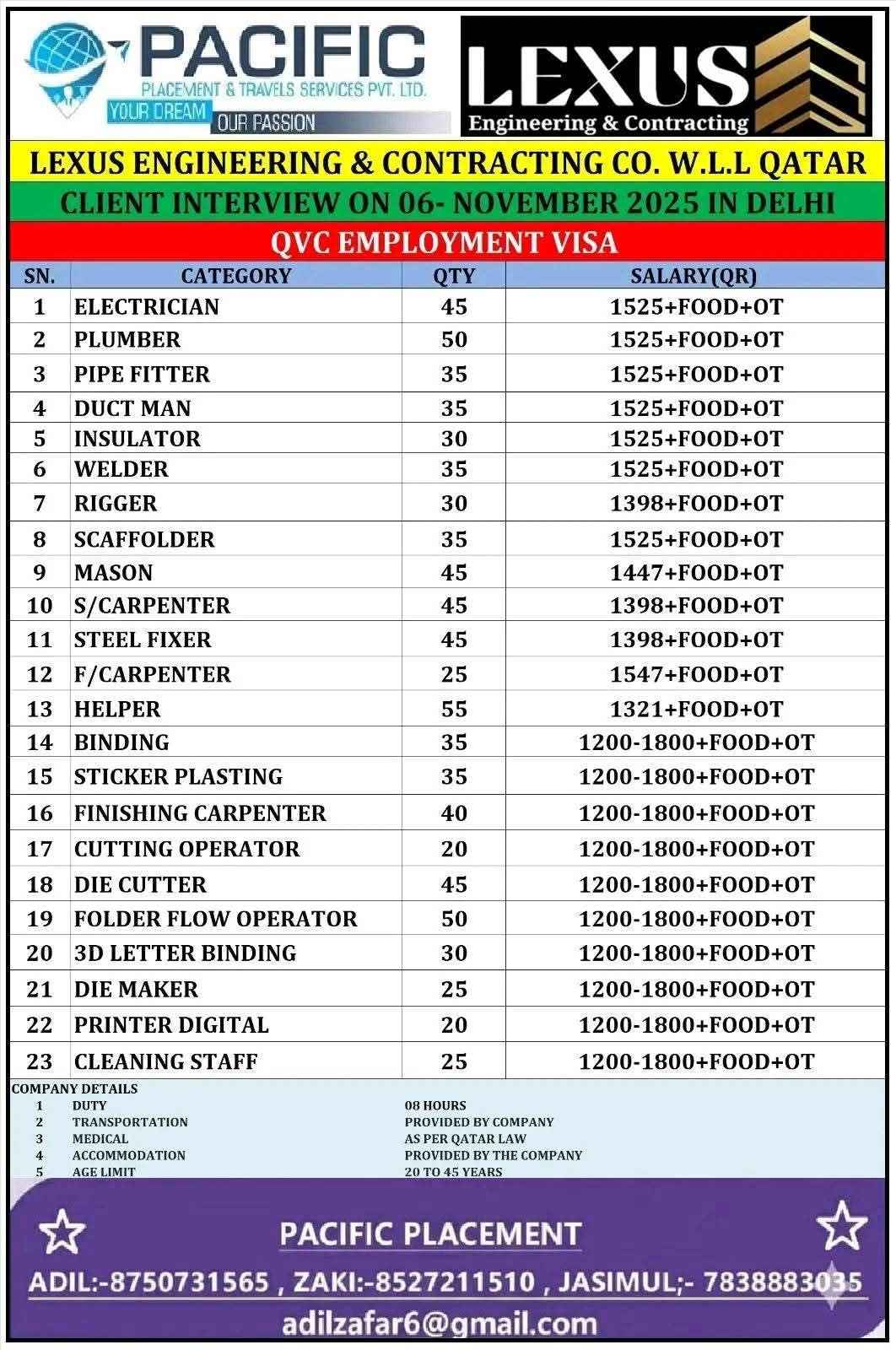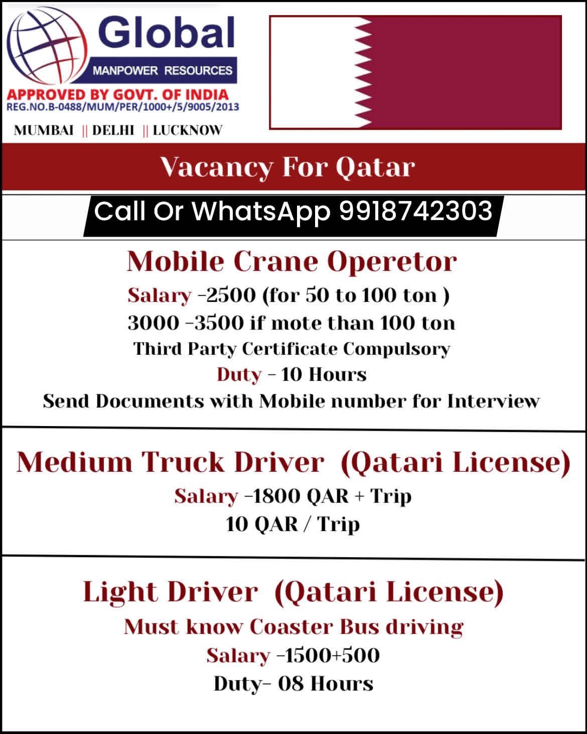 VACANCY FOR QATAR