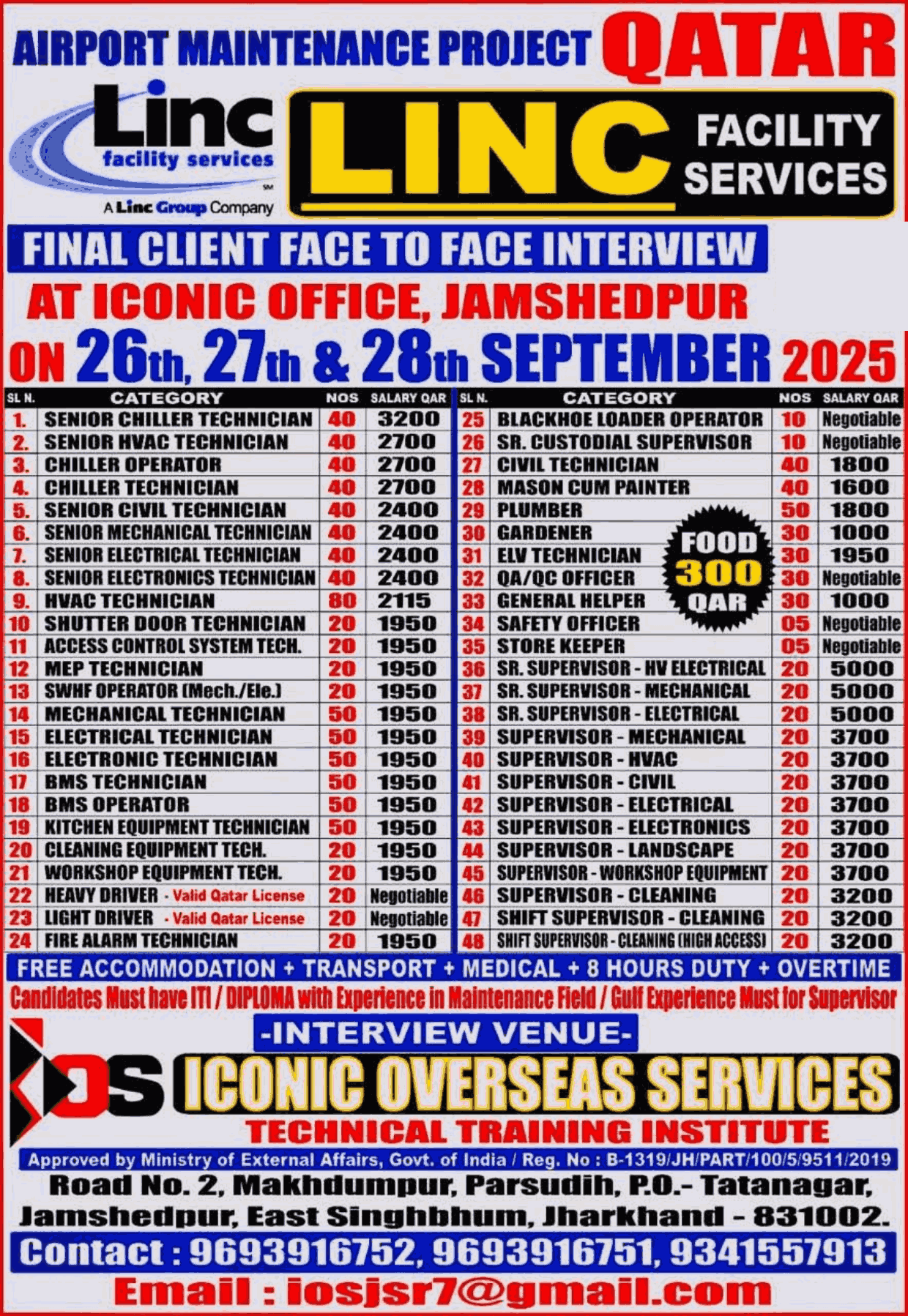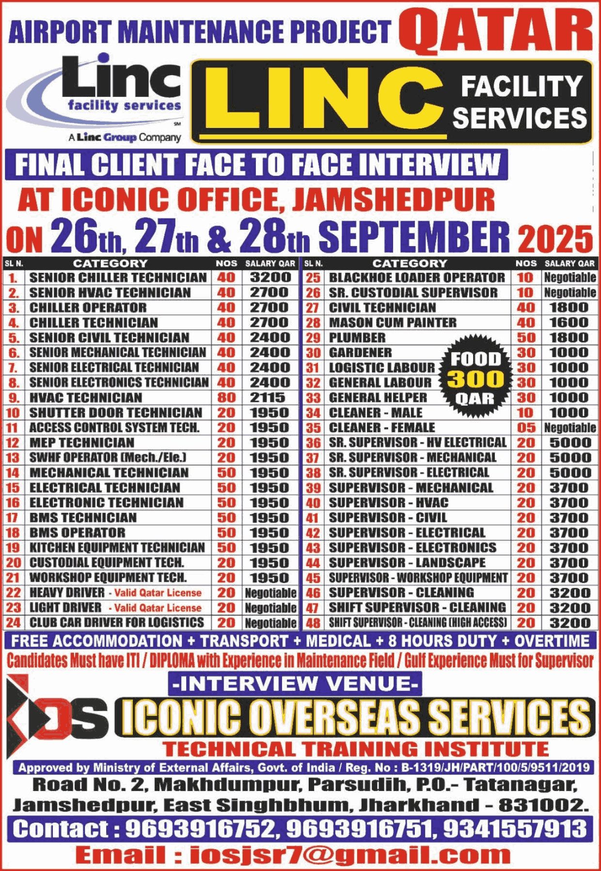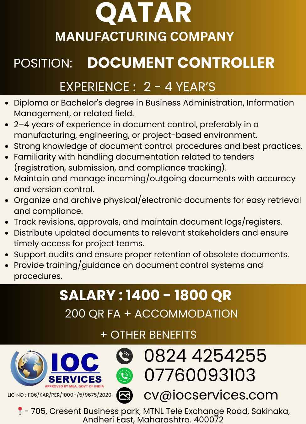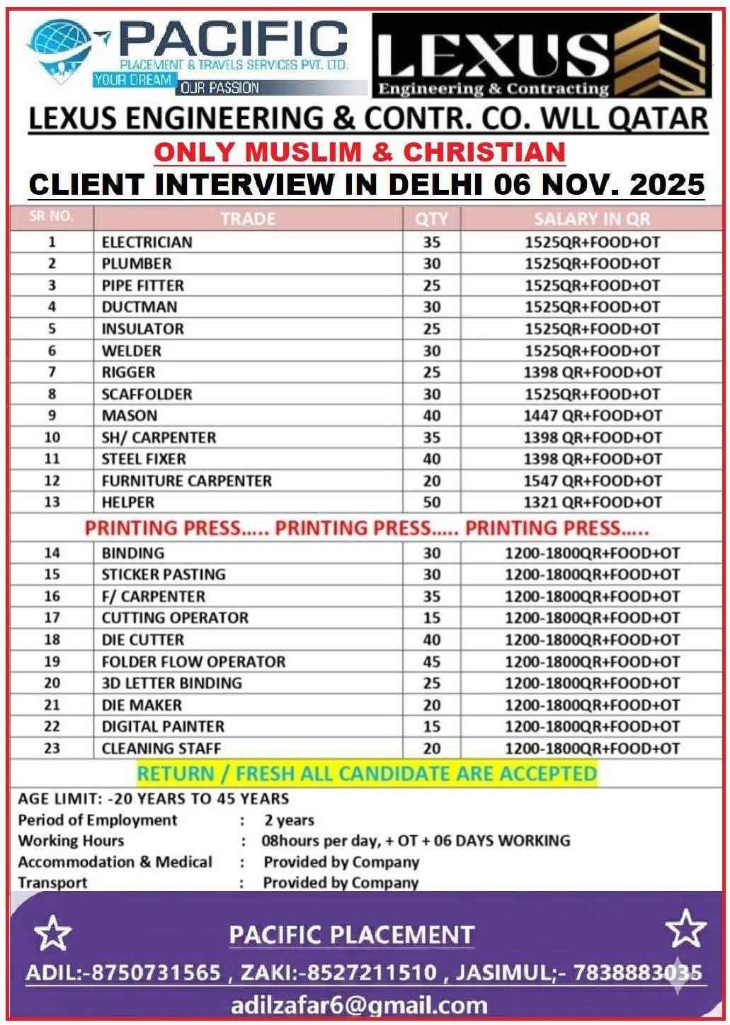 VACANCY FOR QATAR