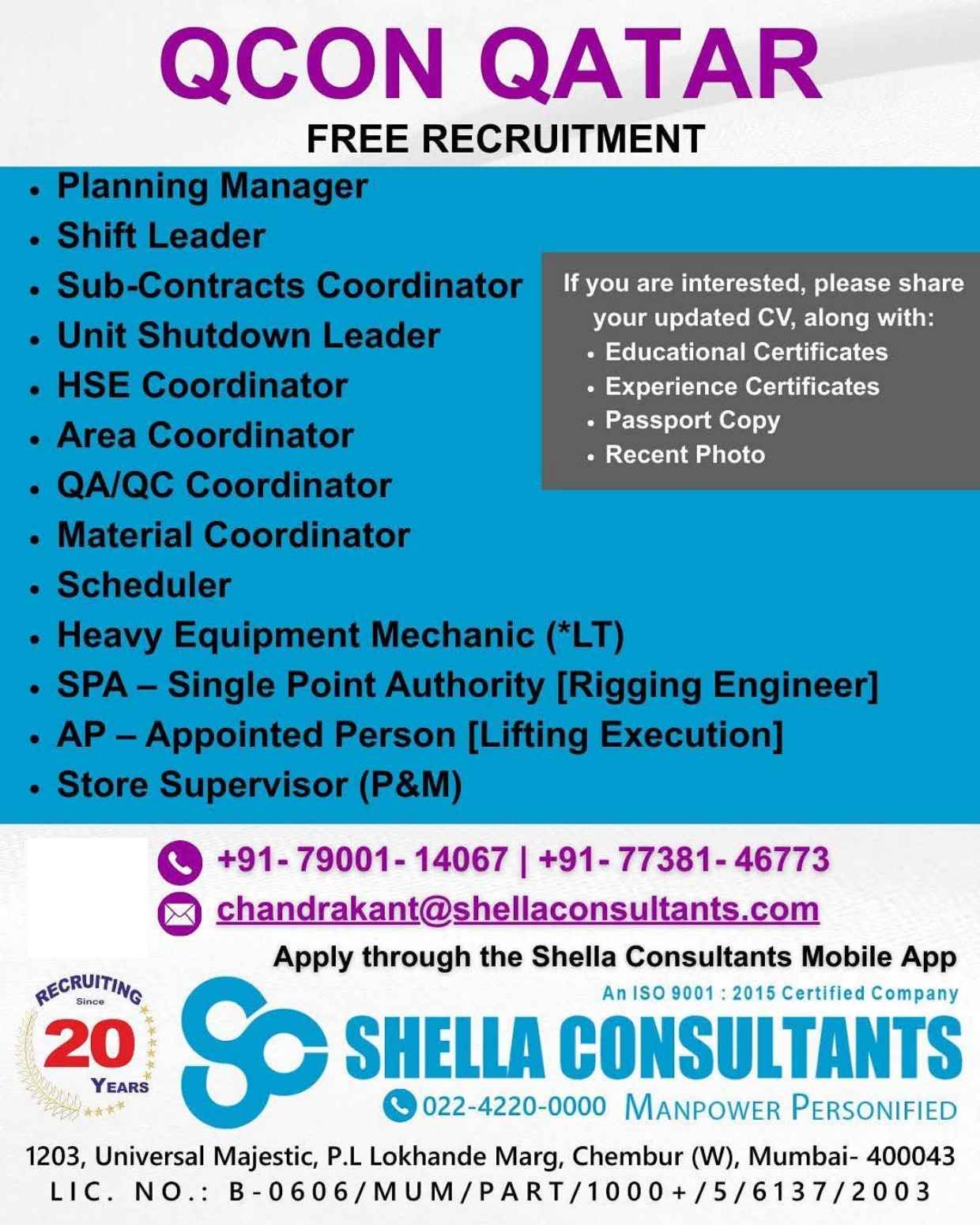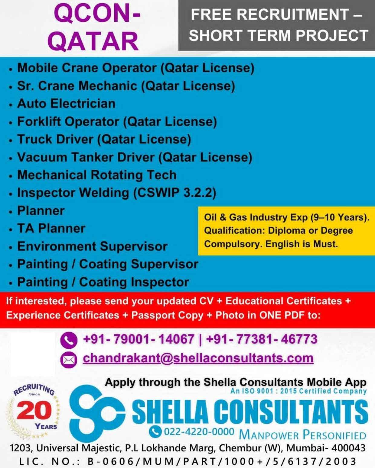 SHUT DOWN PROJECTS FREE RECRUITMENT Qcon QATAR