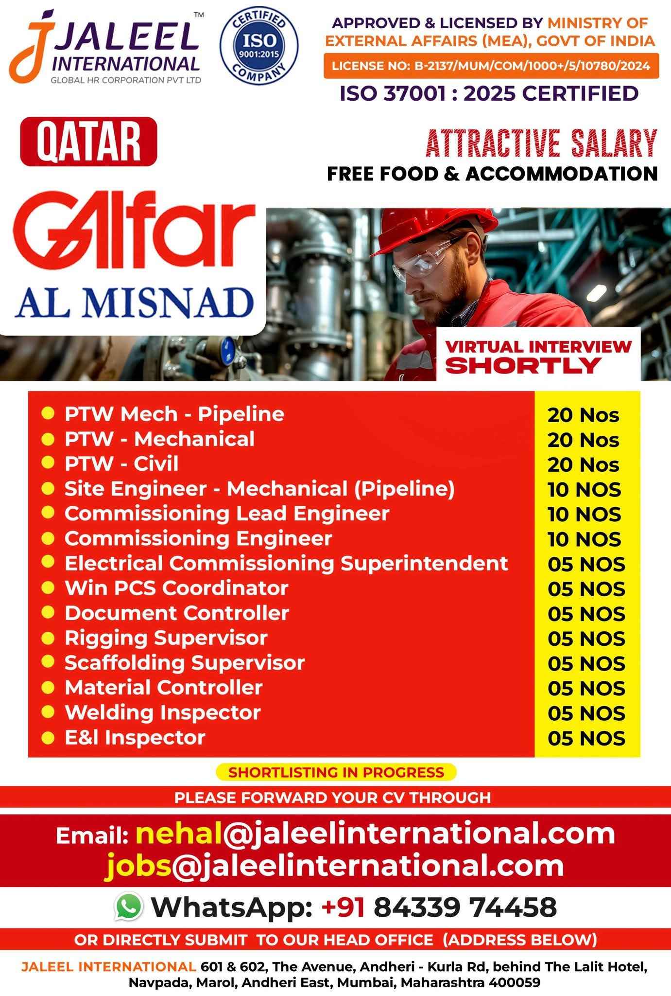 Urgent Requirement For QATAR ENERGY (LNG Project)