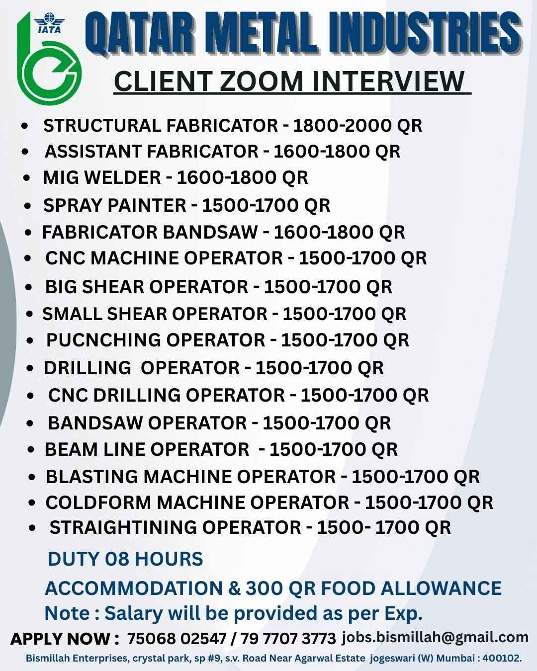 URGENTLY REQUIRED FOR QATAR SHORT TERM JOB
