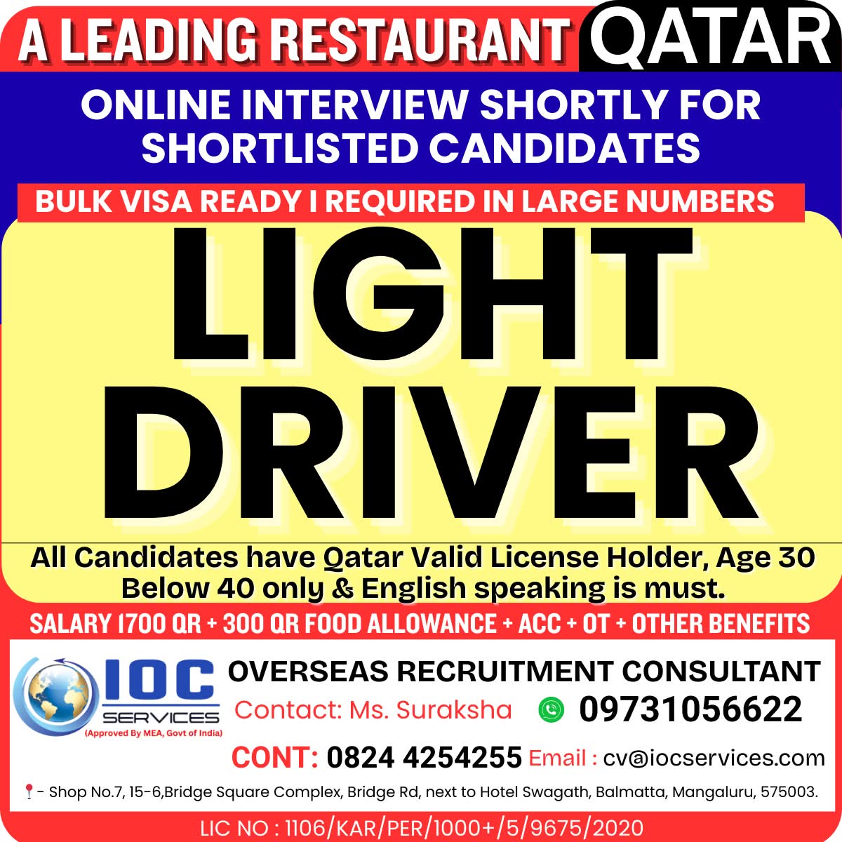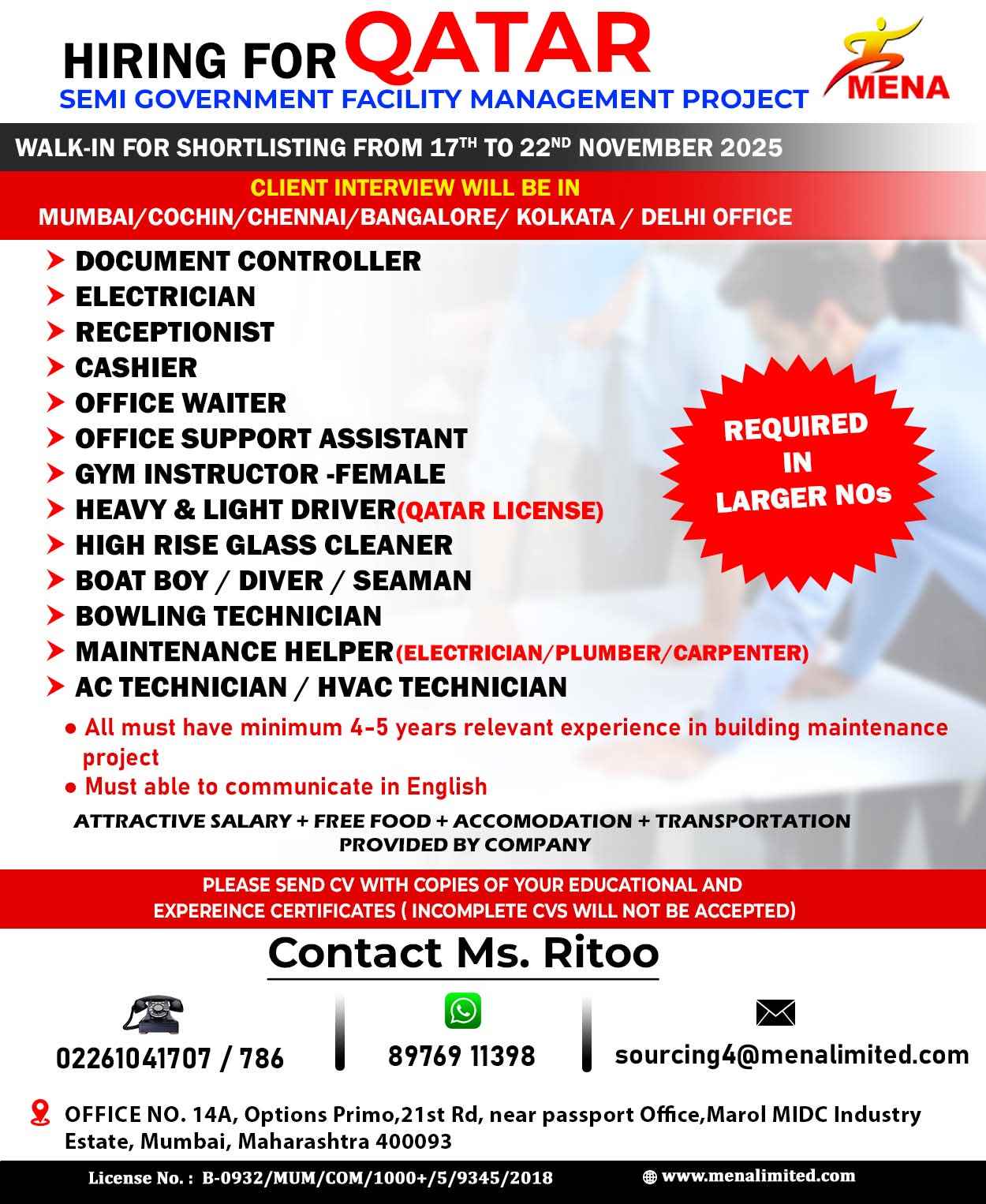 We are Hiring FOR QATAR