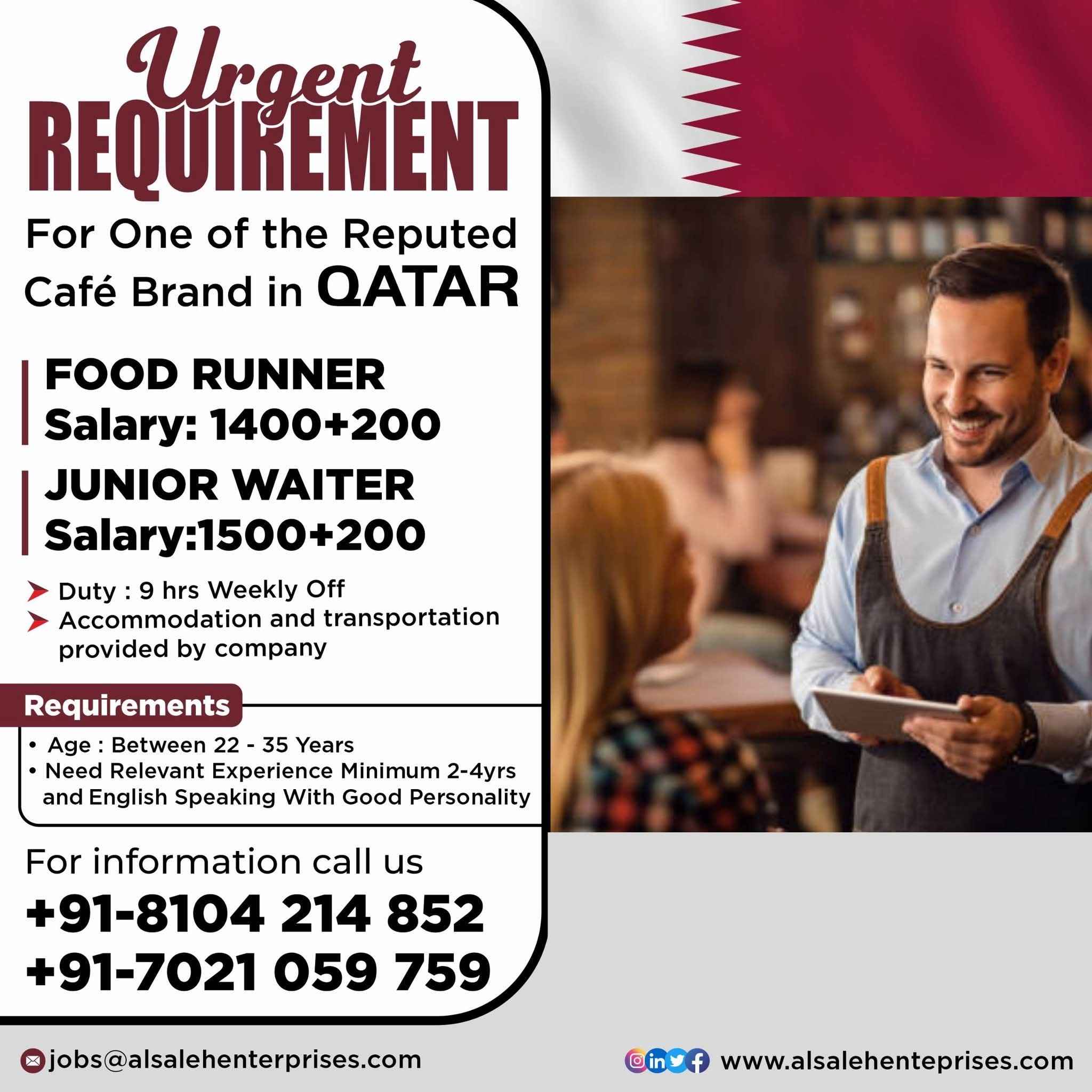 URGENT REQUIREMENT For a leading QSR Company in Qatar