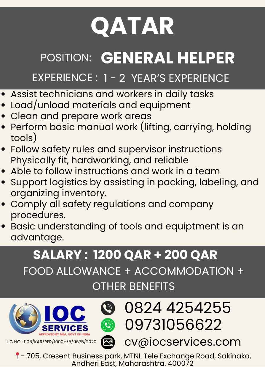 Urgently Required For QATAR