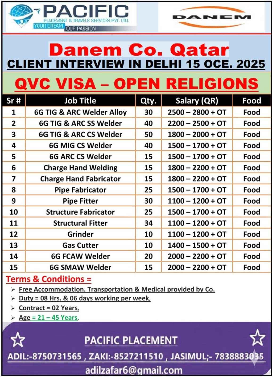 Urgent Requirement Danem Co. Qatar