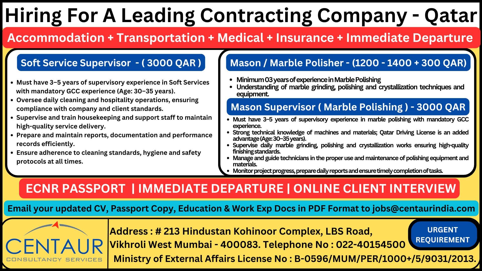 URGENT REQUIREMENT FOR QATAR