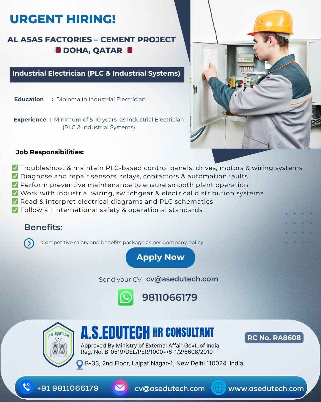 URGENT HIRING! AL ASAS FACTORIES - CEMENT PROJECT DOHA, QATAR