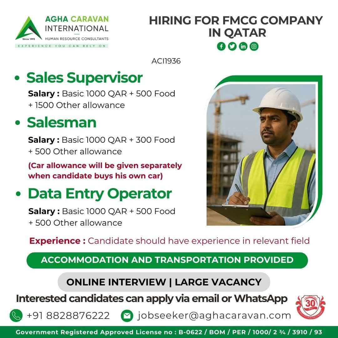 HIRING FOR FMCG COMPANY IN QATAR