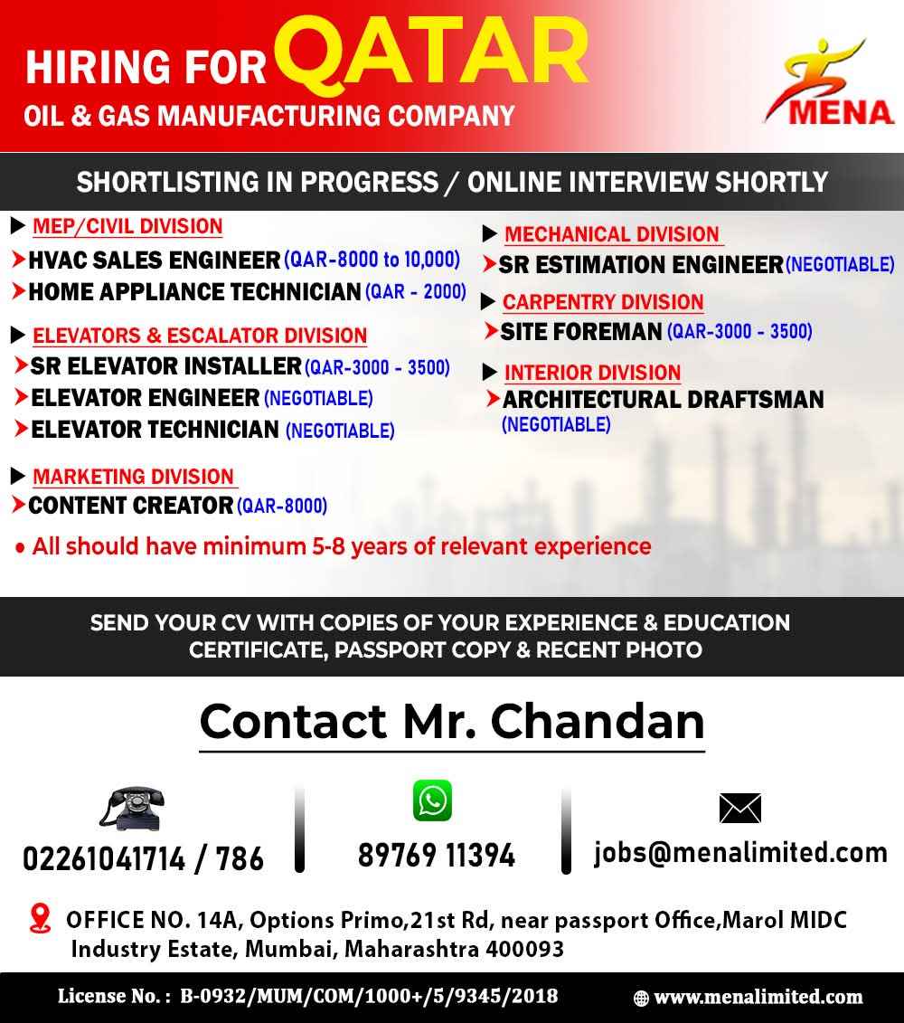 We are Hiring for QATAR