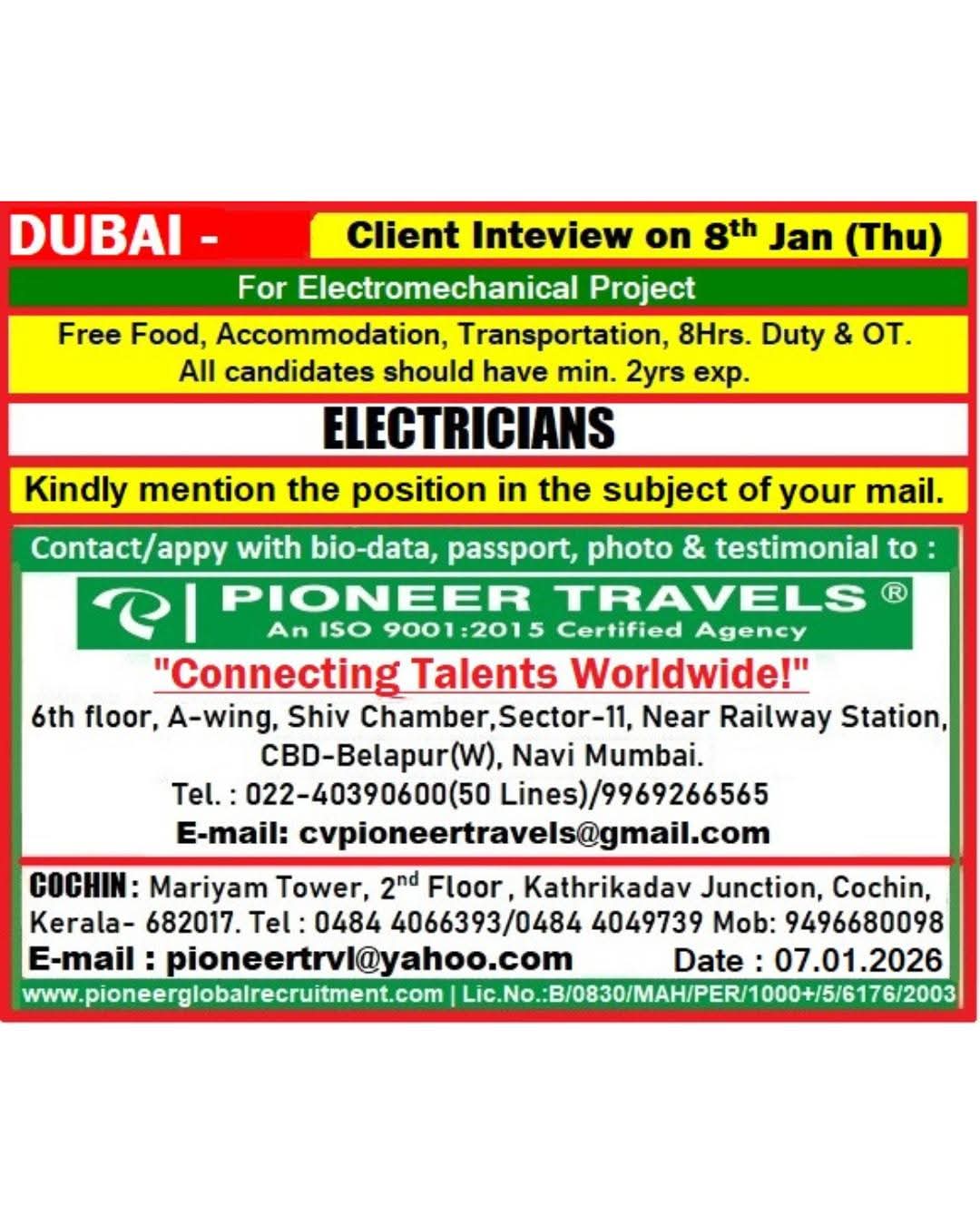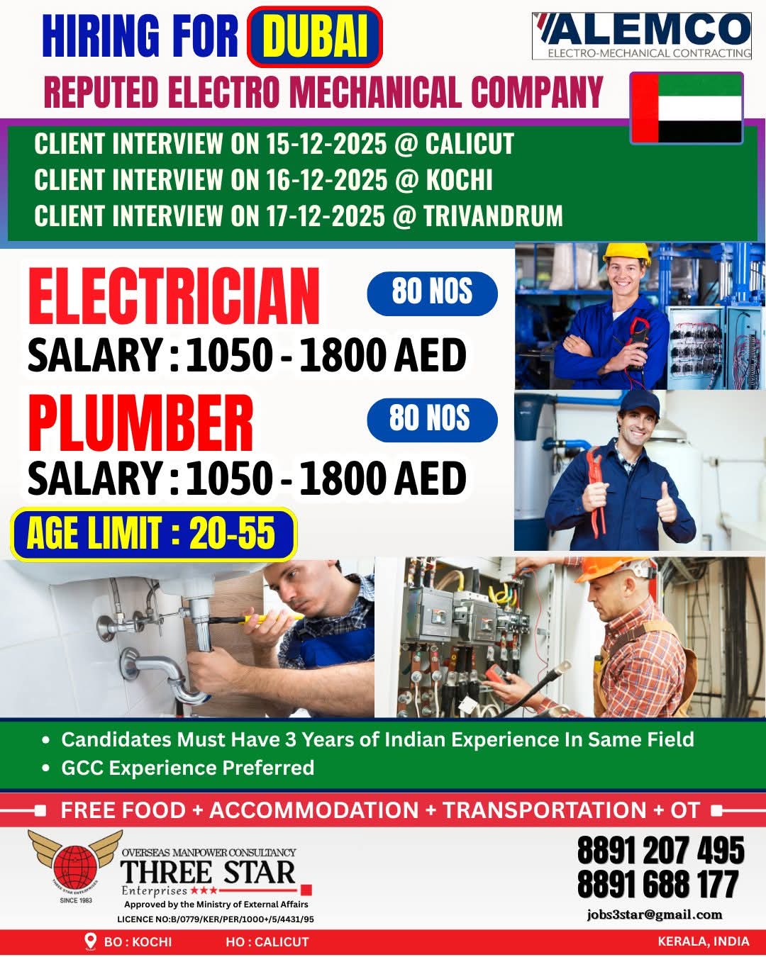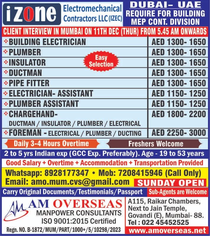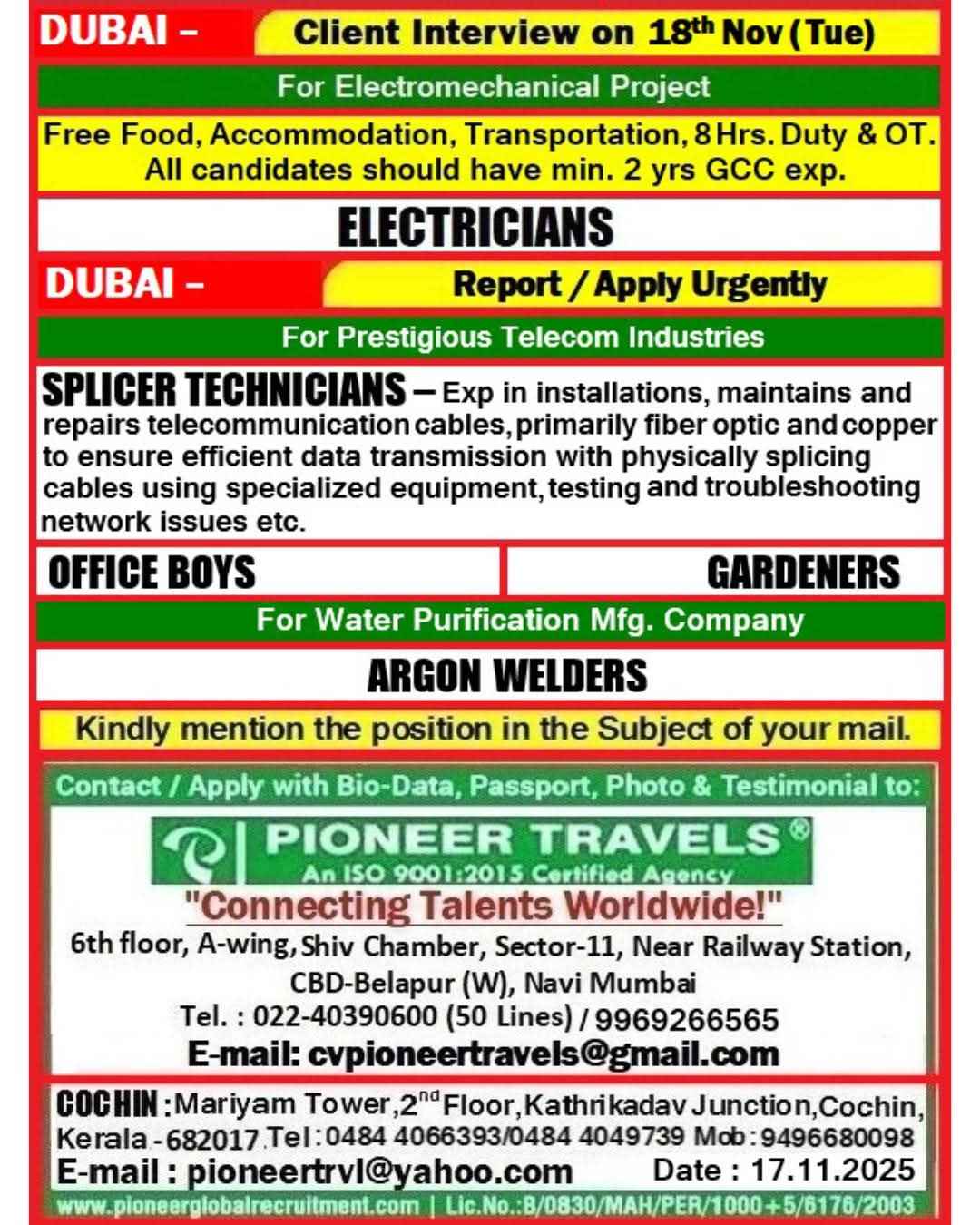 HIRING NOW!!! ELECTRO MECHANICAL COMPANY - DUBAI