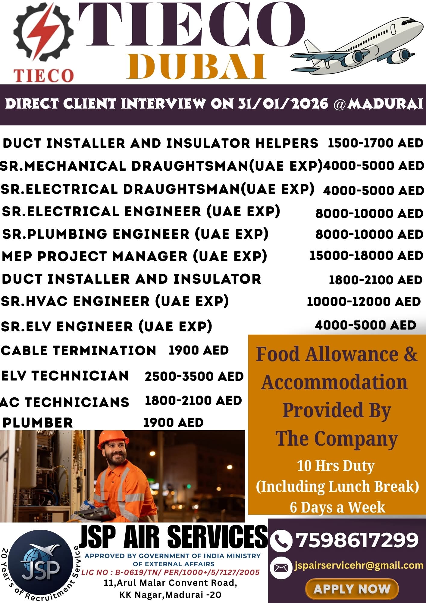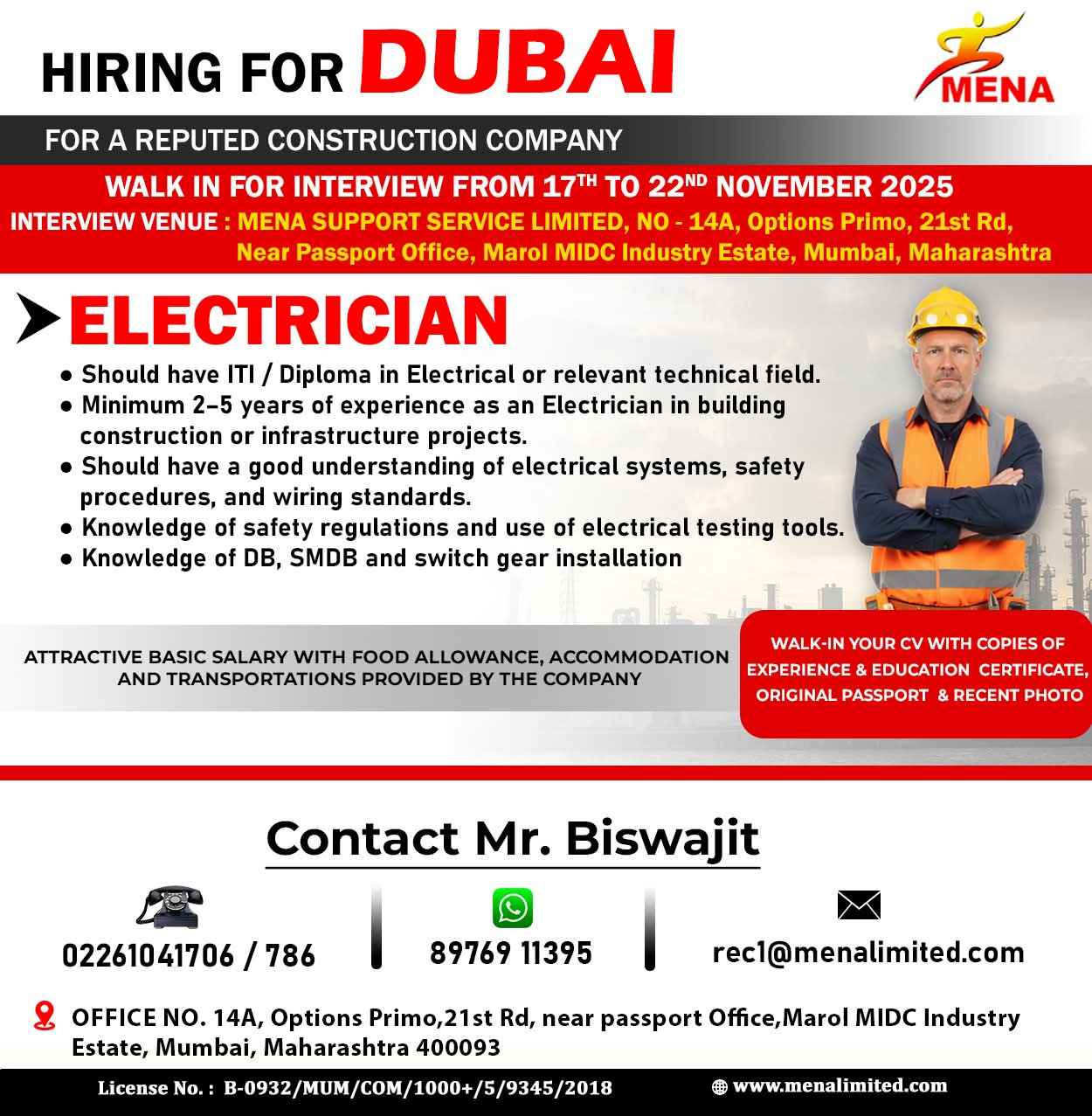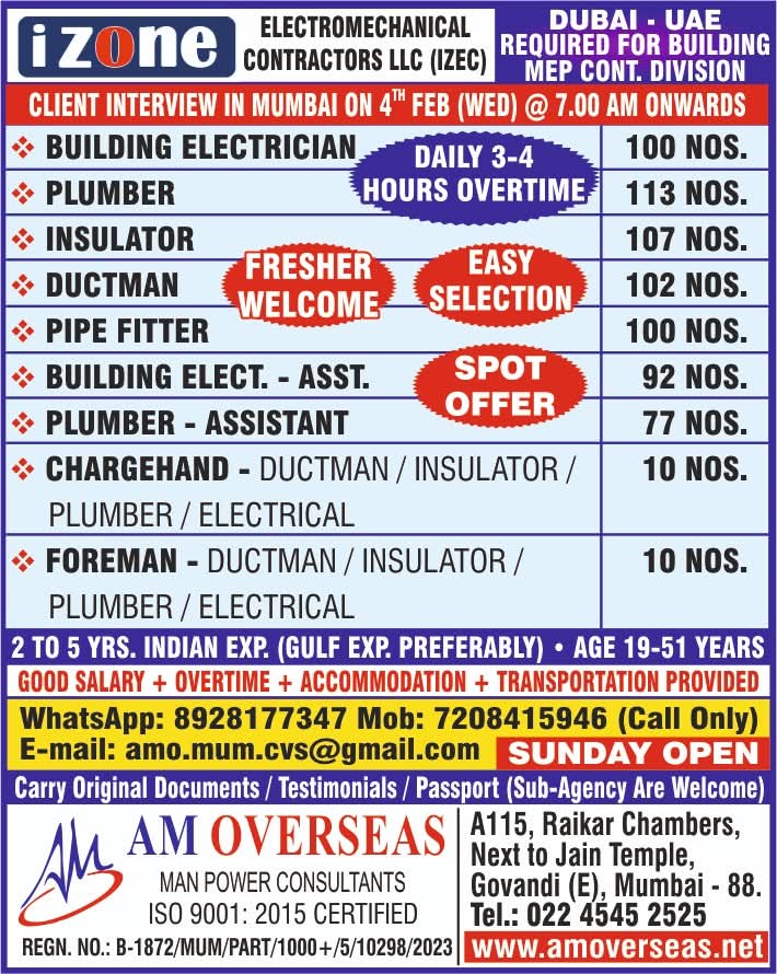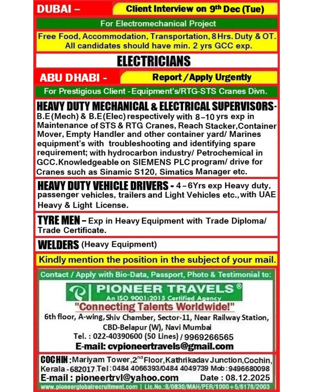 HIRING NOW!!! ELECTRO MECHANICAL COMPANY - DUBAI