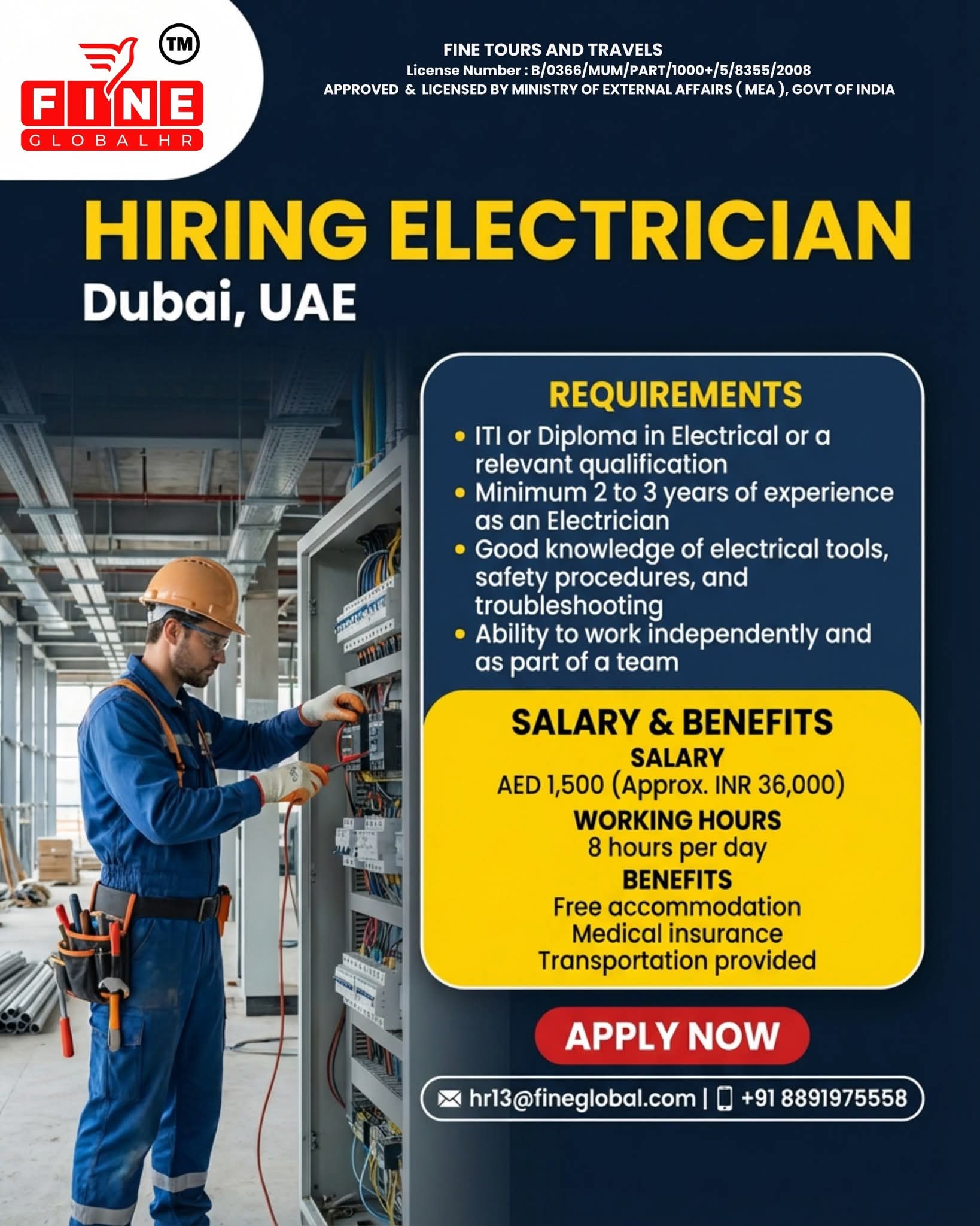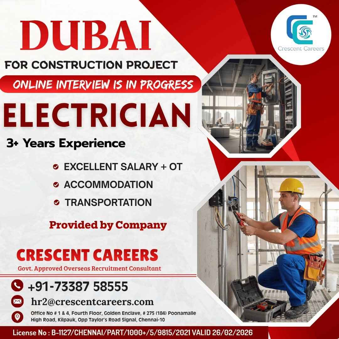 HIRING ELECTRICIAN Dubai, UAE