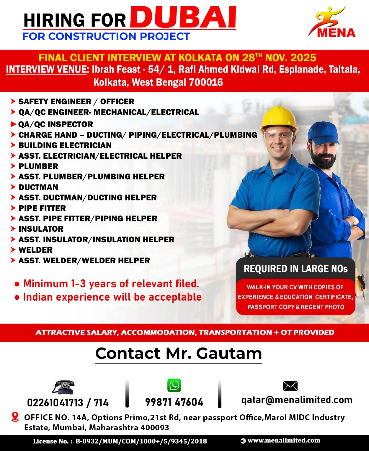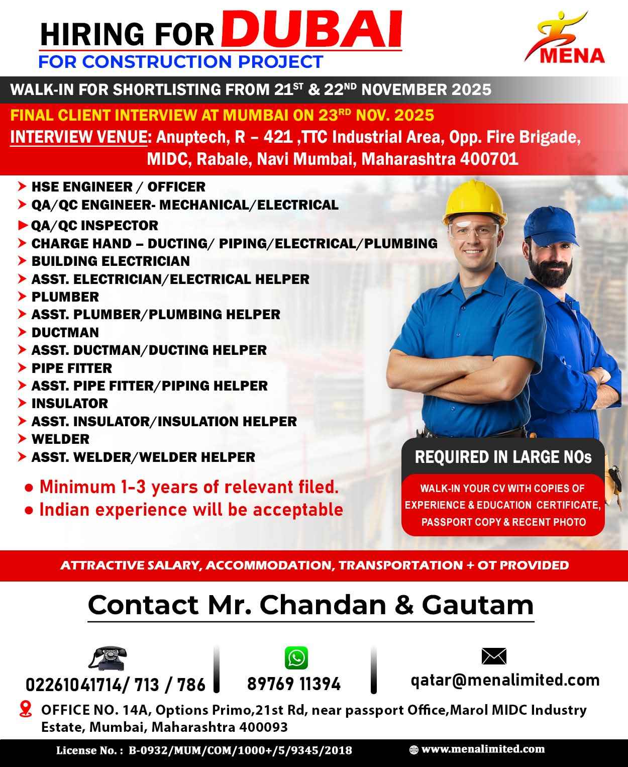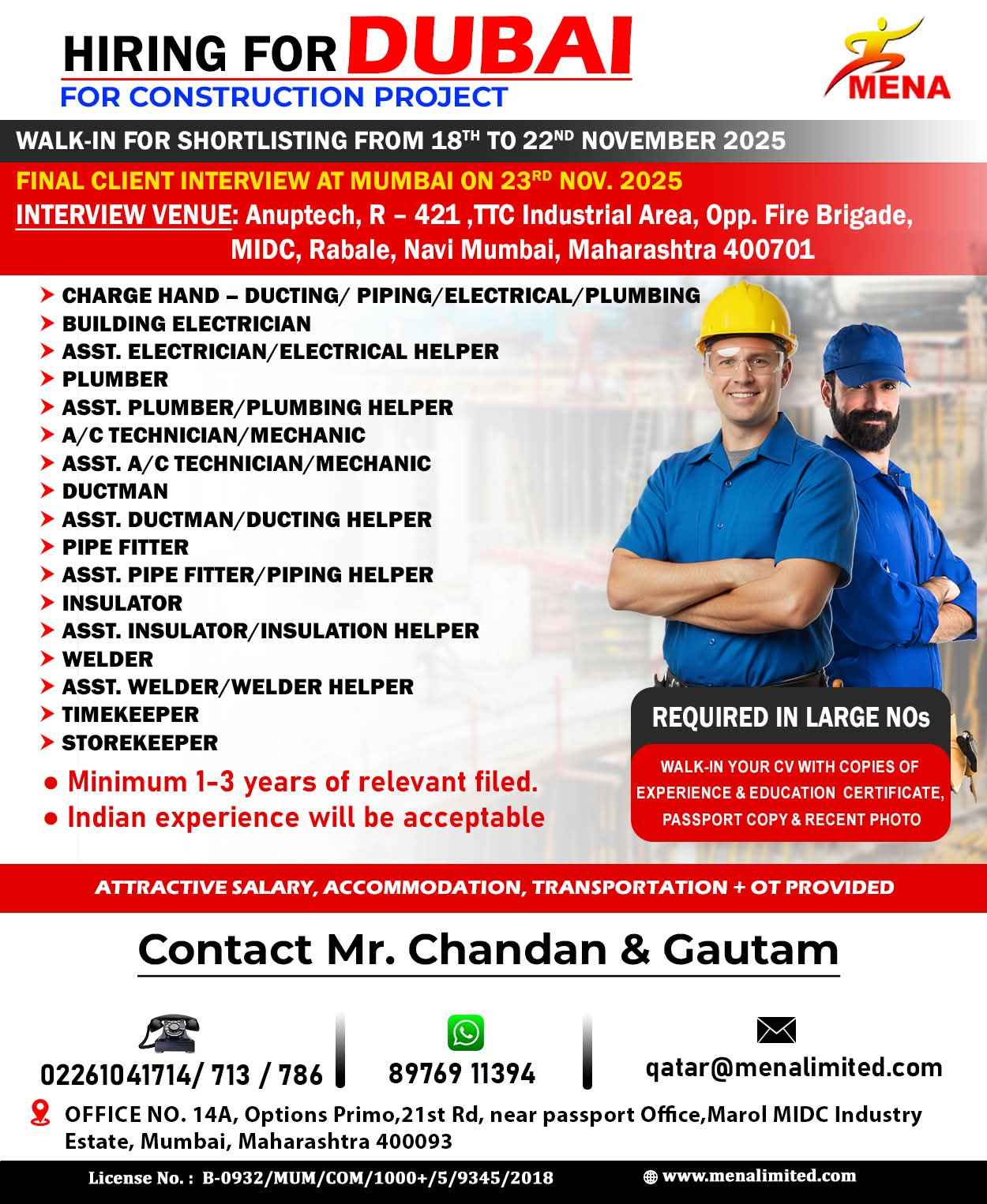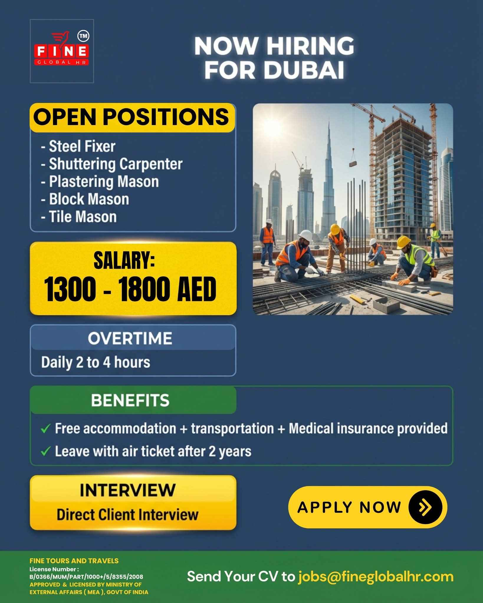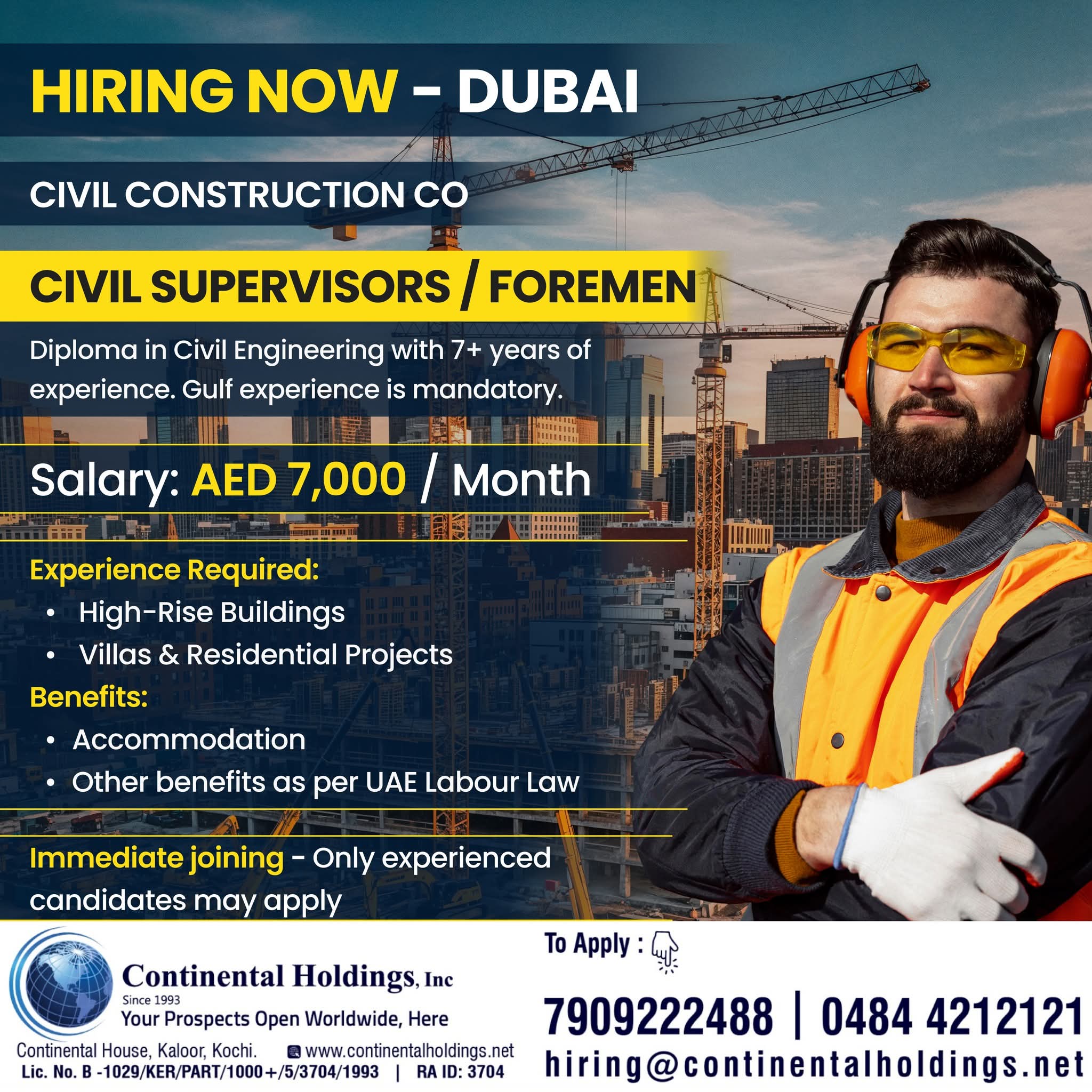 HIRING FOR CONSTRUCTION PROJECT DUBAI