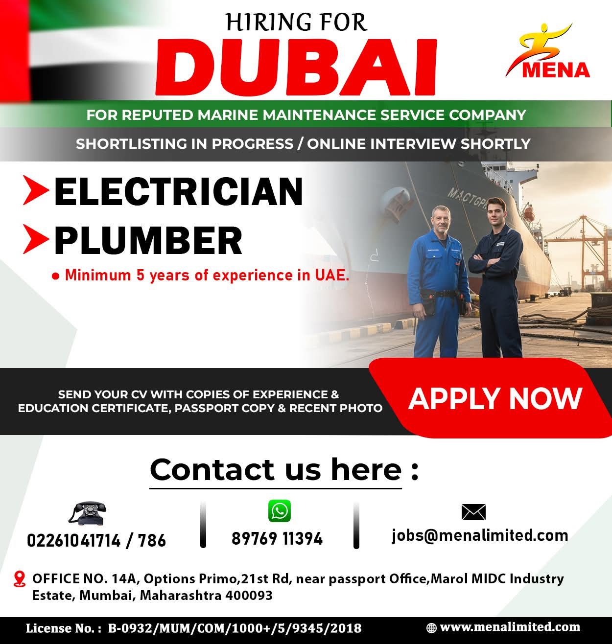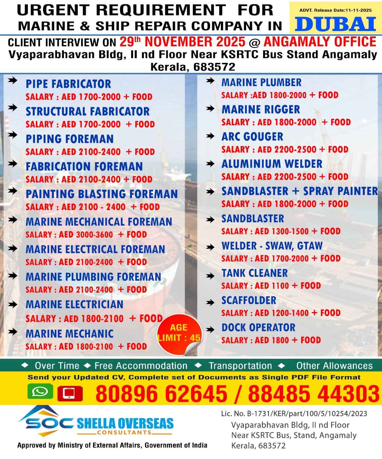 URGENT REQUIREMENT FOR MARINE & SHIP REPAIR COMPANY IN DUBAI