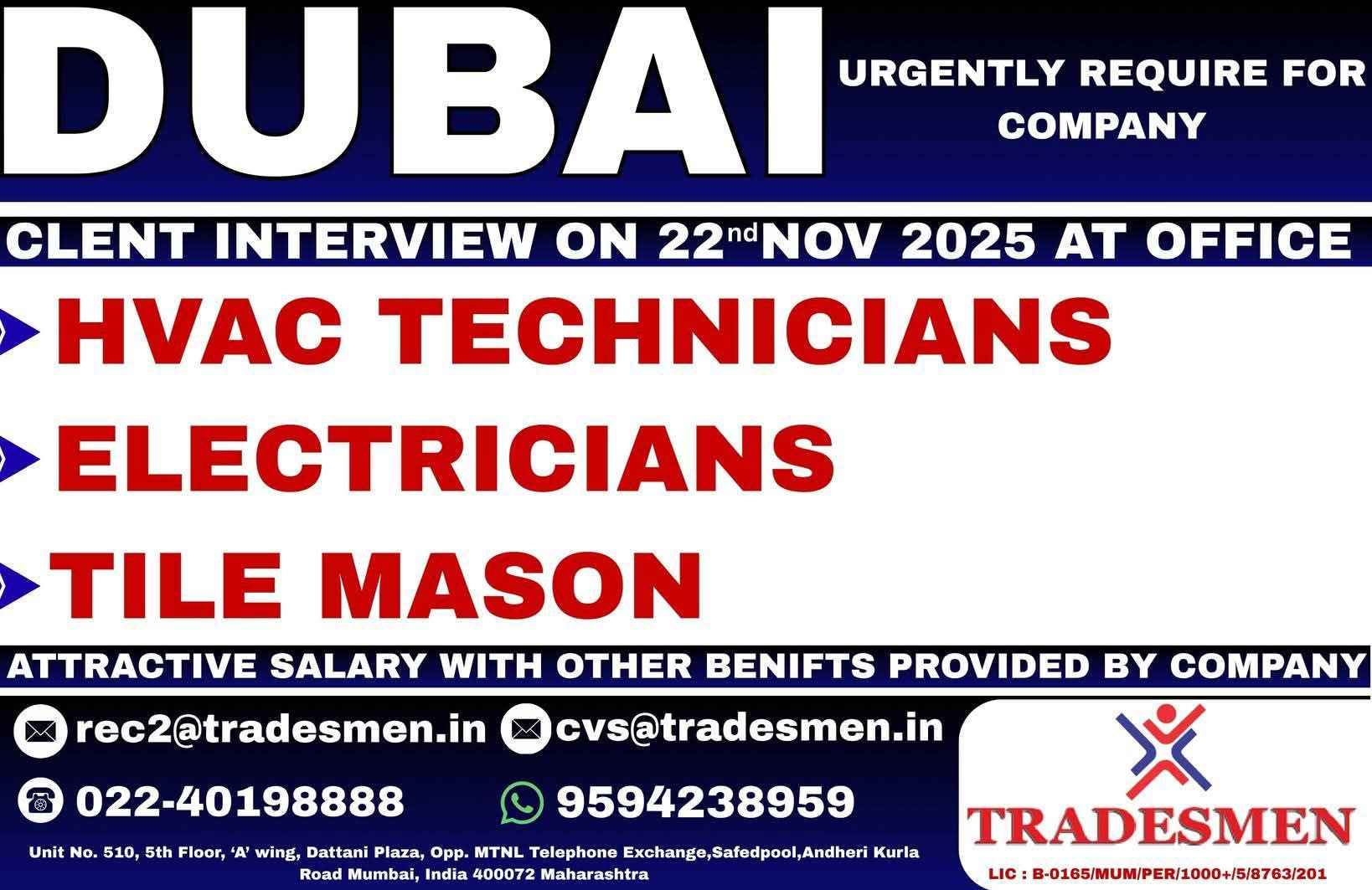 URGENTLY HIRING FOR DUBAI