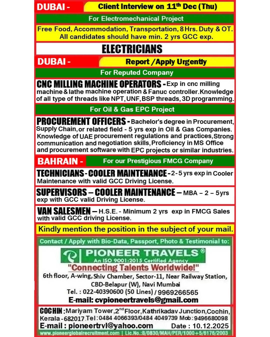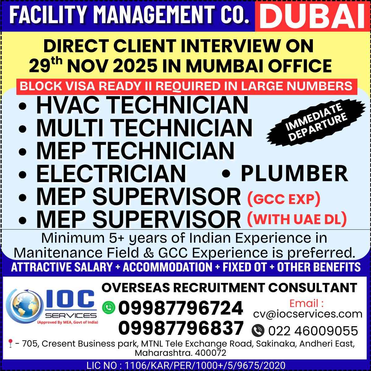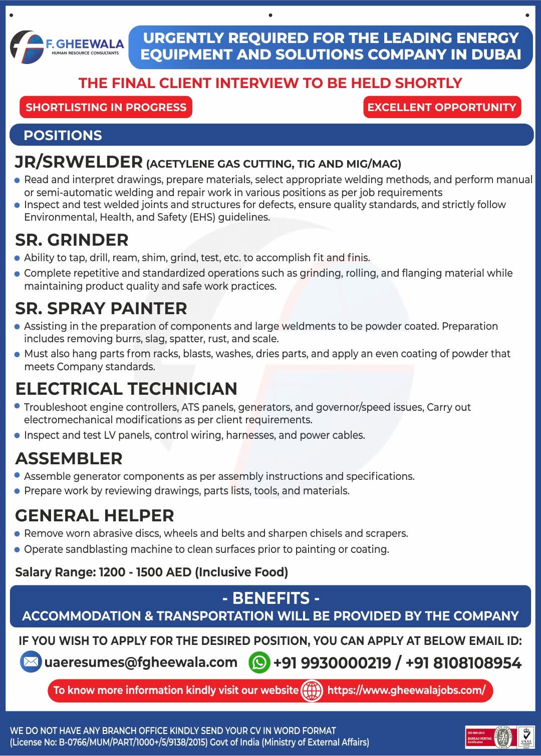 URGENT REQUIREMENTE FOR UAE