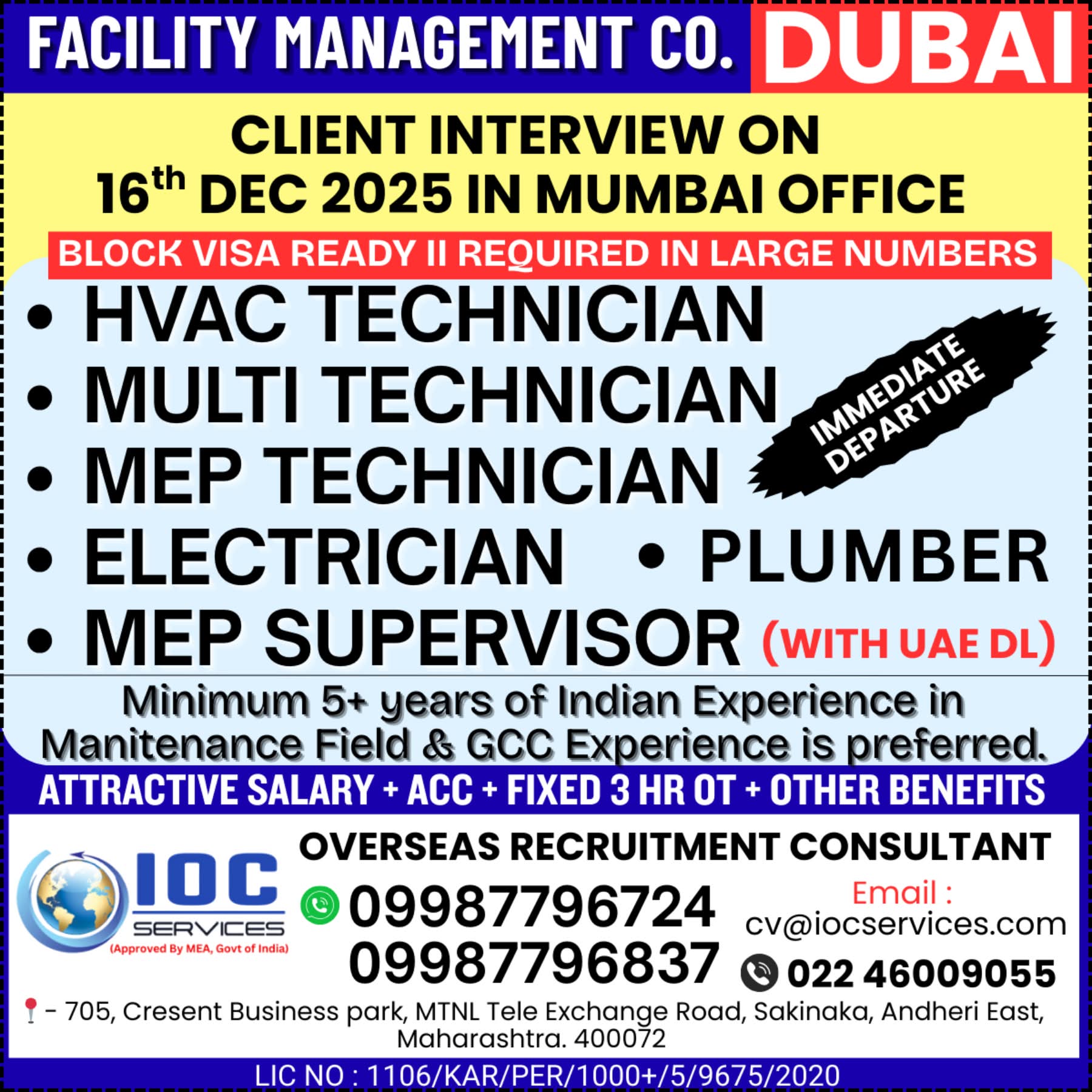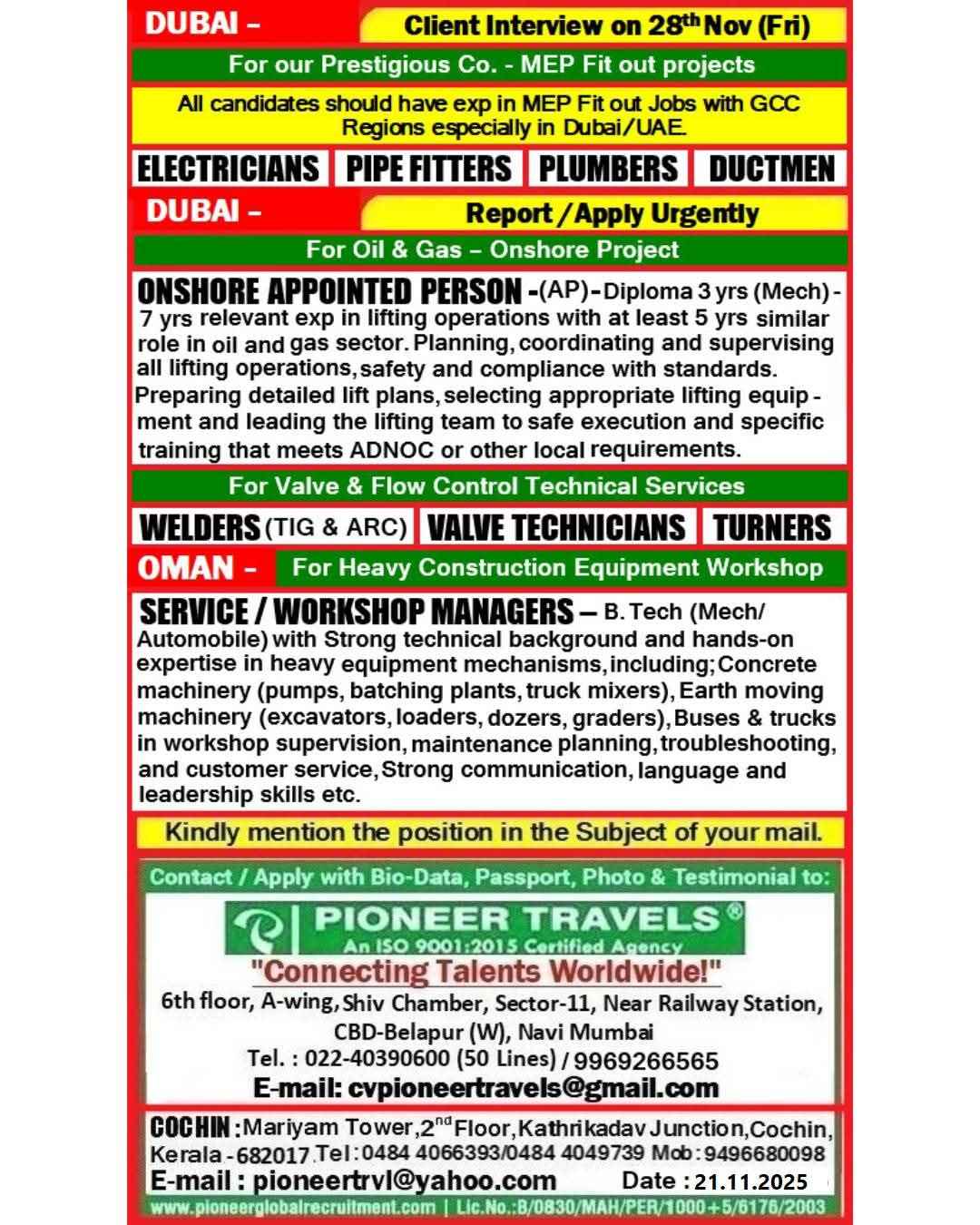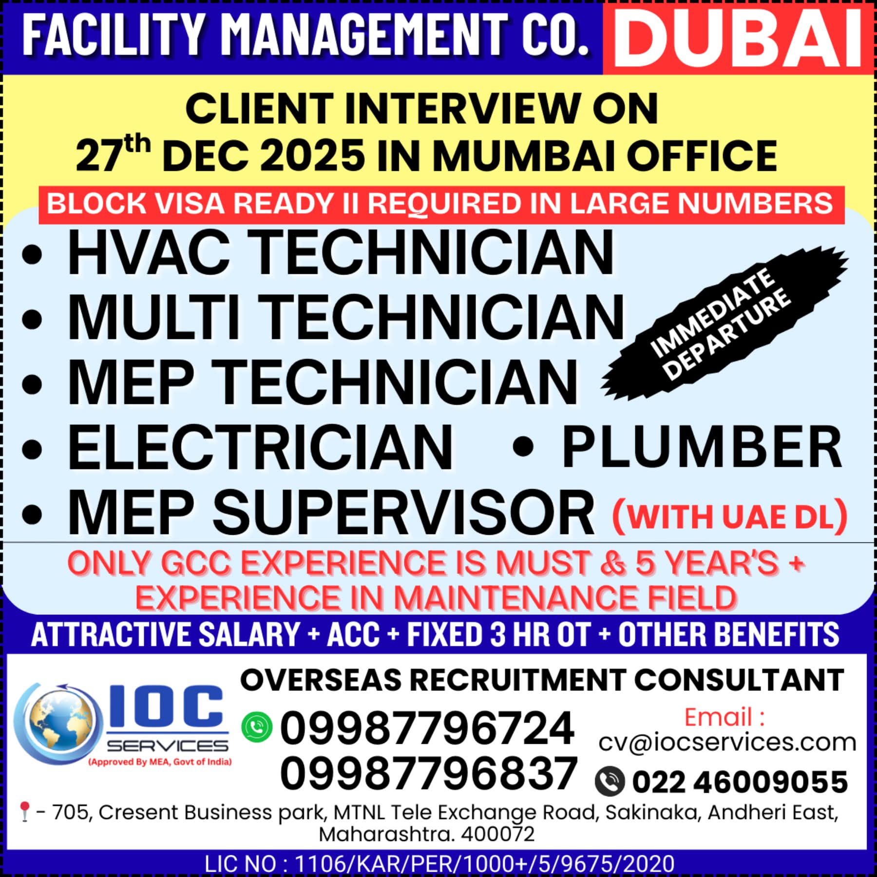 URGENT REQUIREMENTE FOR UAE