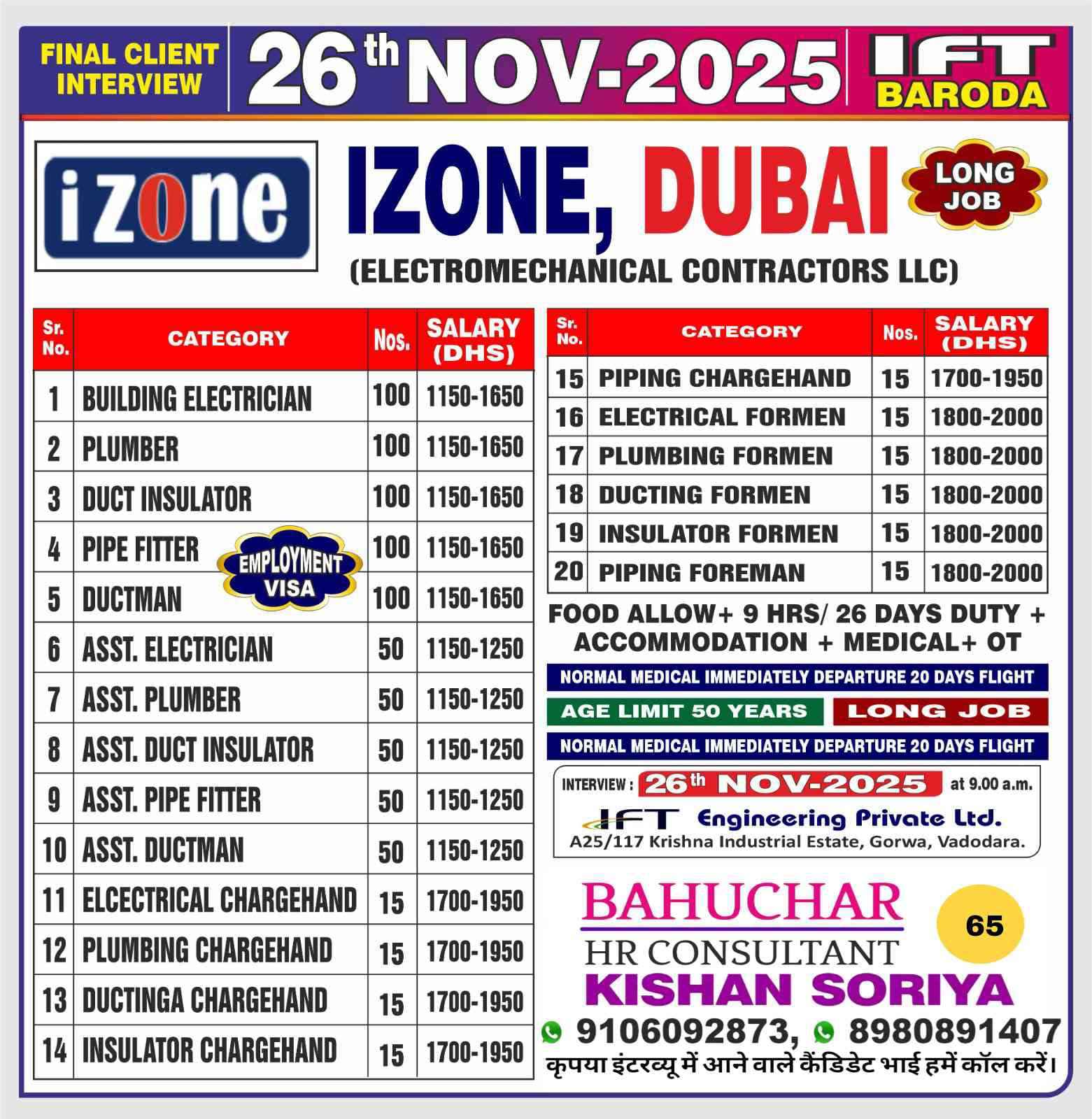 WE'RE HIRING FOR DUBAI RUNI ELECTRO MECHANICAL CO.