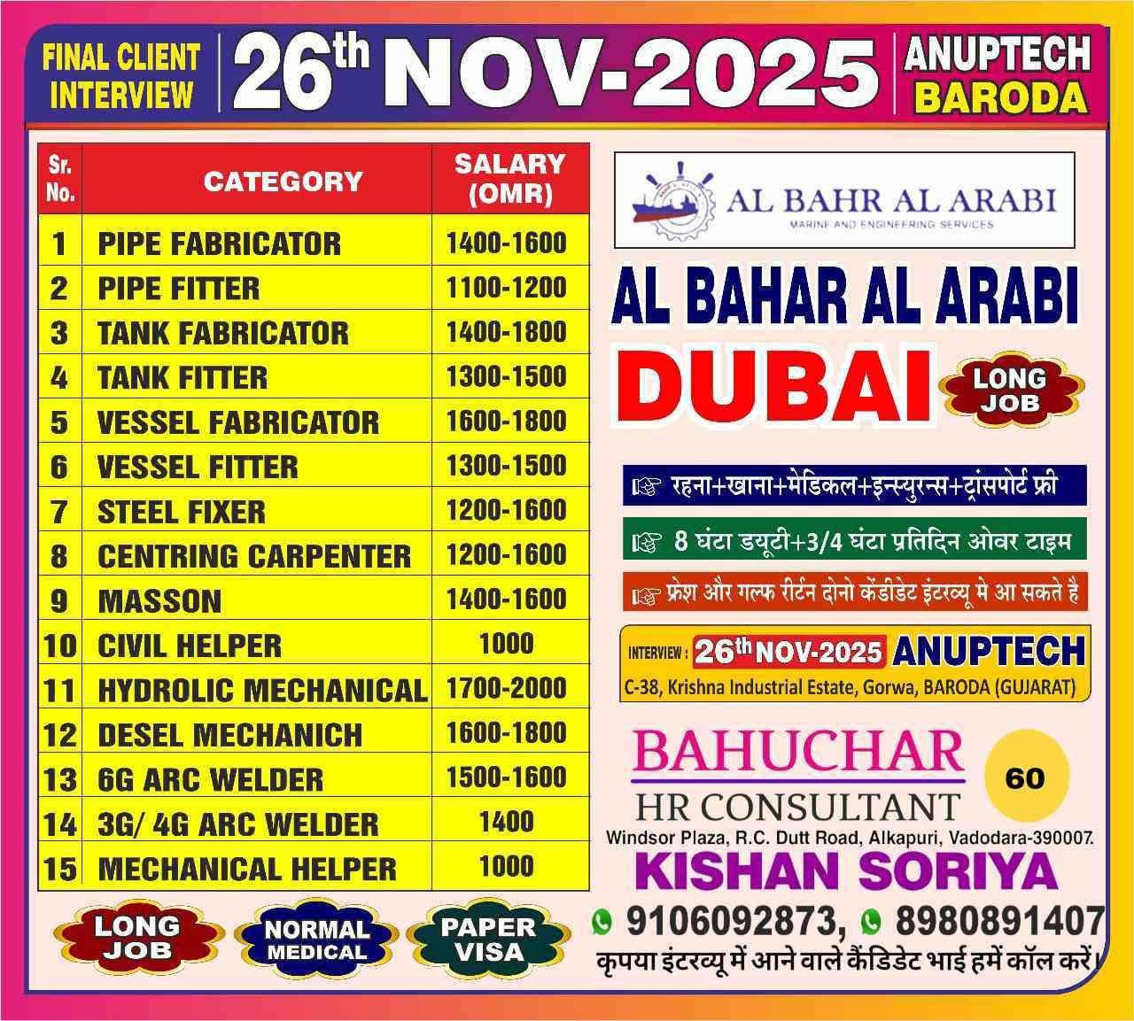 Urgent Requirement For AL BAHAR AL ARABI DUBAI