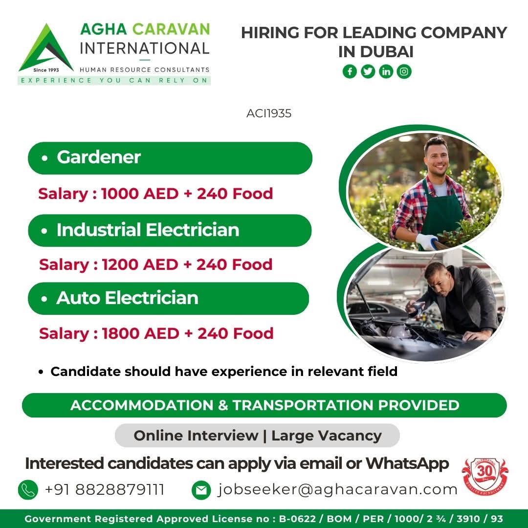 Urgent Requirement LEADING COMPANY IN DUBAI