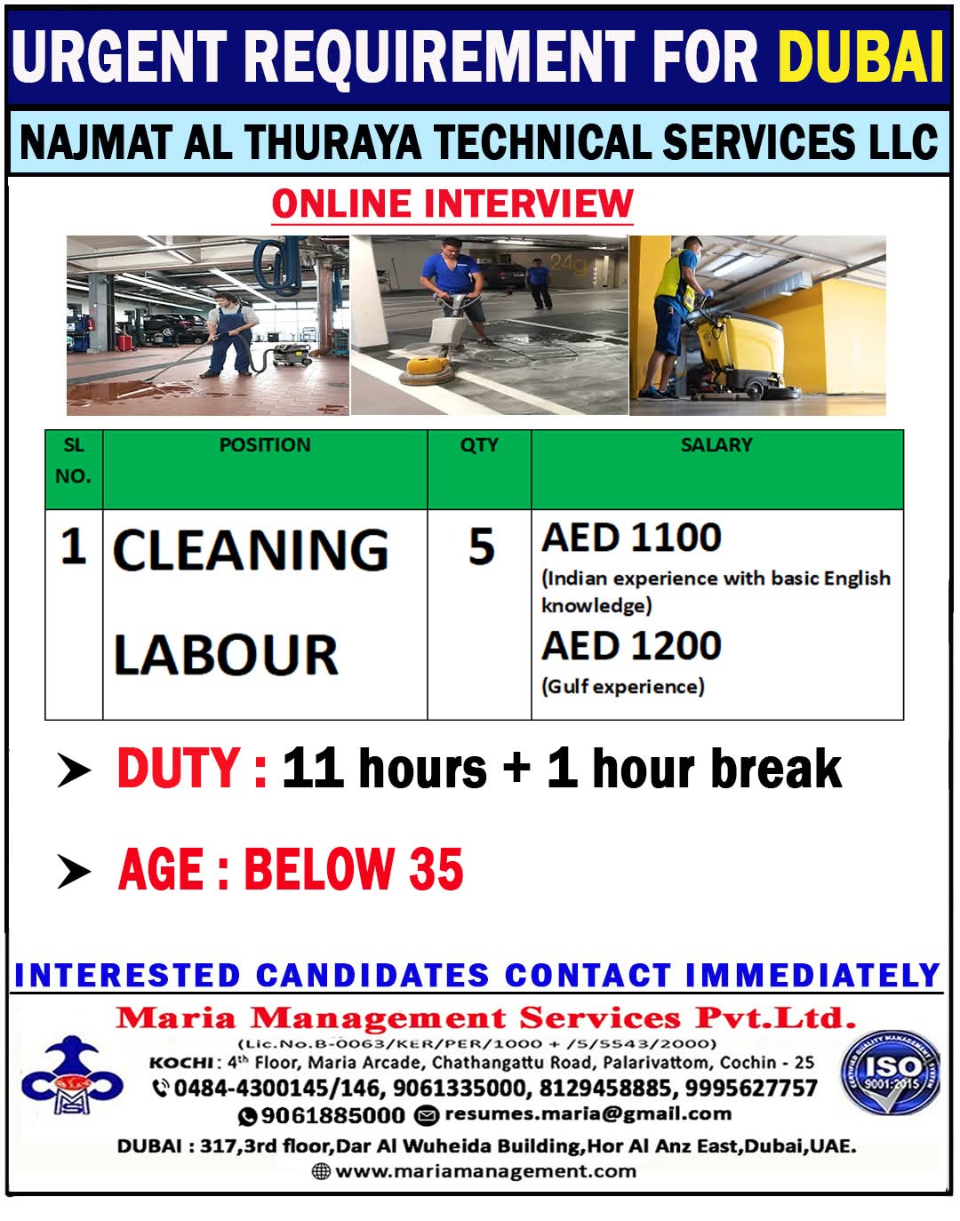 URGENT REQUIREMENT FOR ABM COMPANY IN Dubai