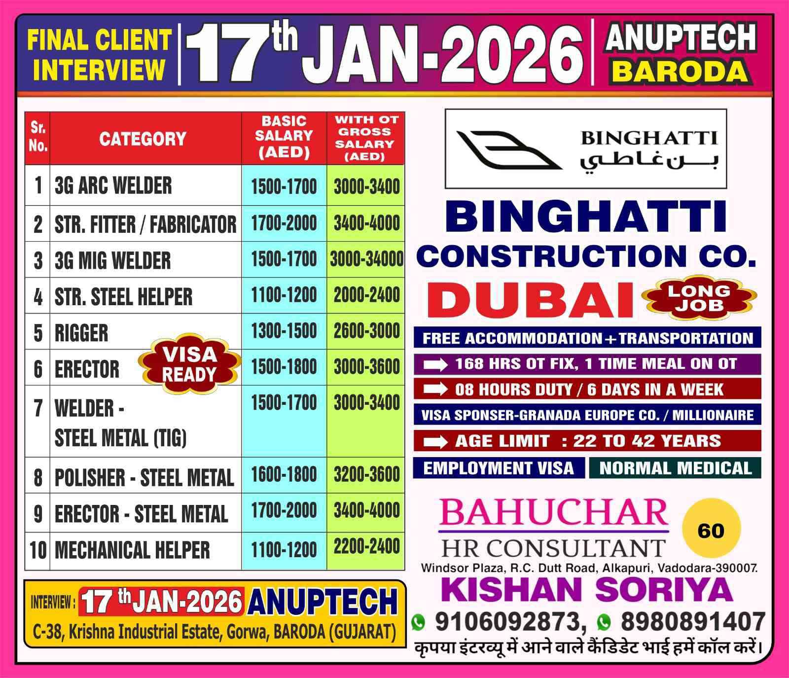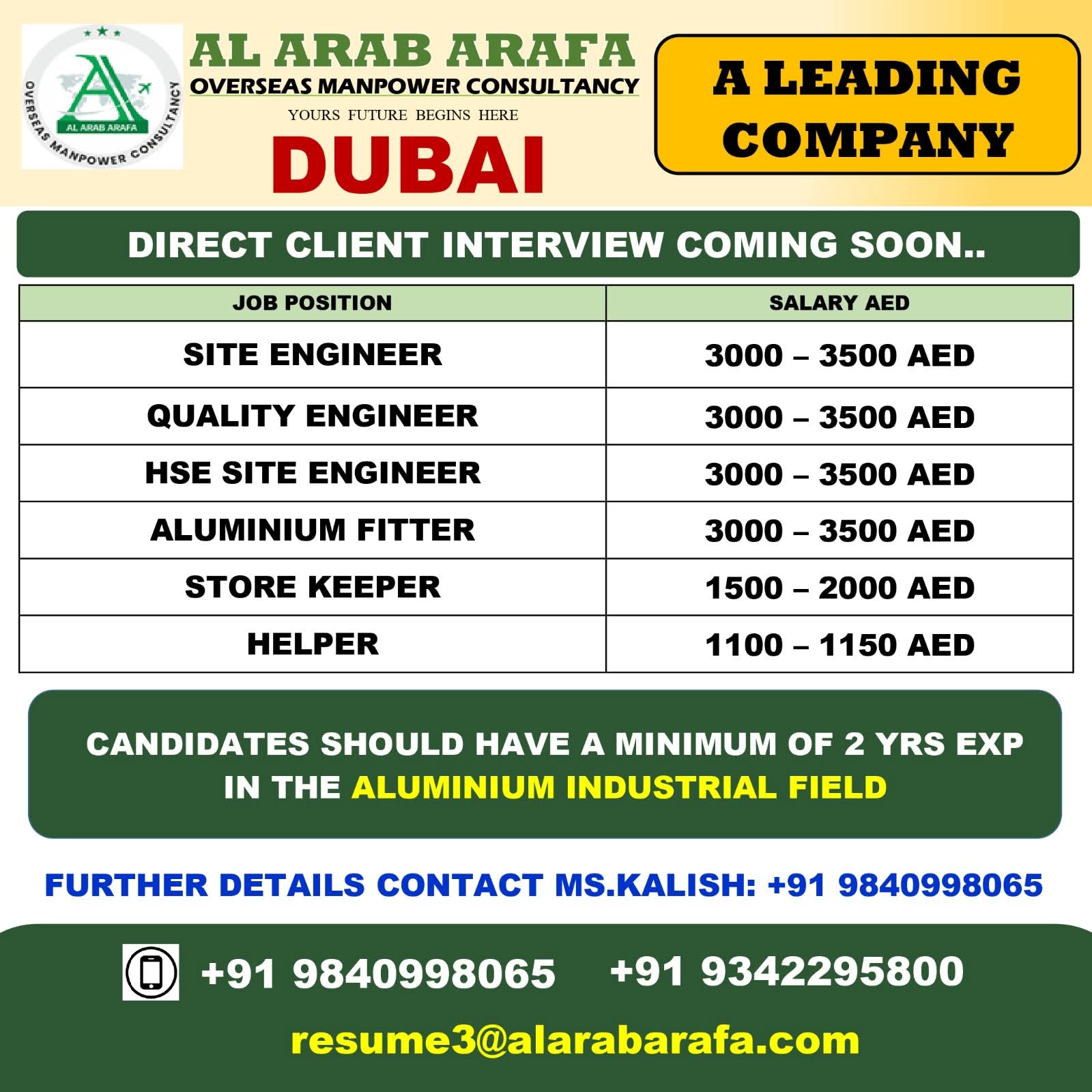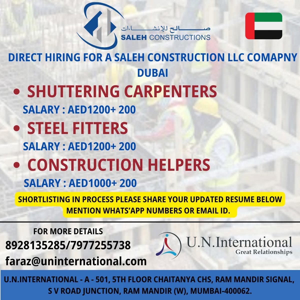 DIRECT HIRING FOR A SALEH CONSTRUCTION LLC COMAPNY DUBAI