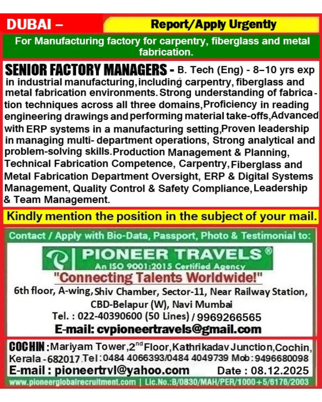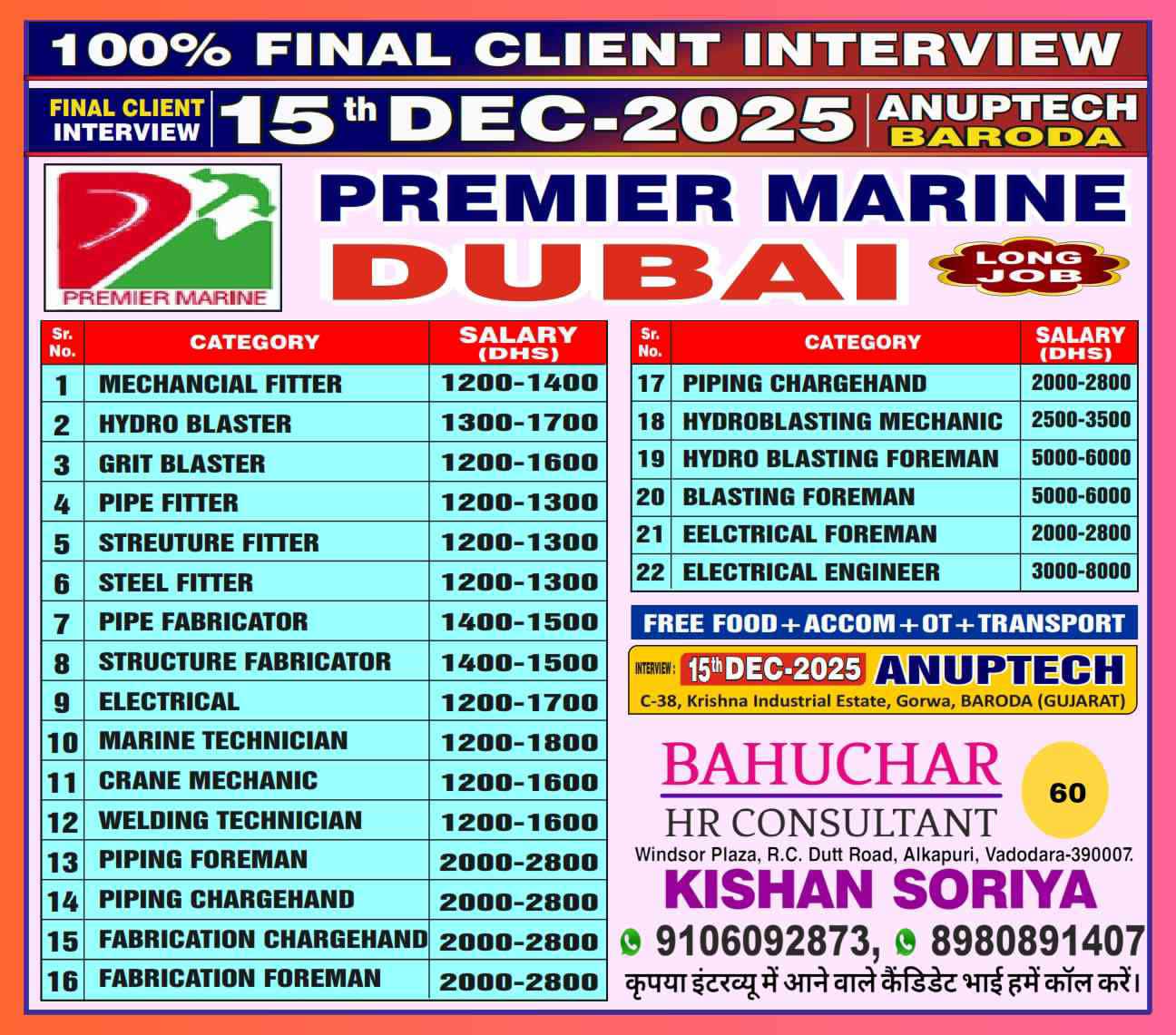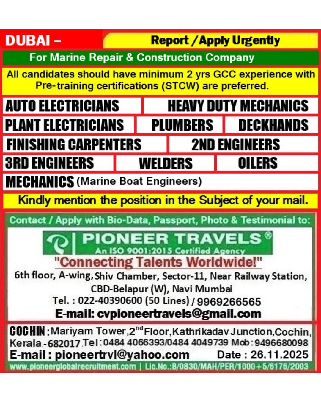 Urgent Requirement PREMIER MARINE Dubai