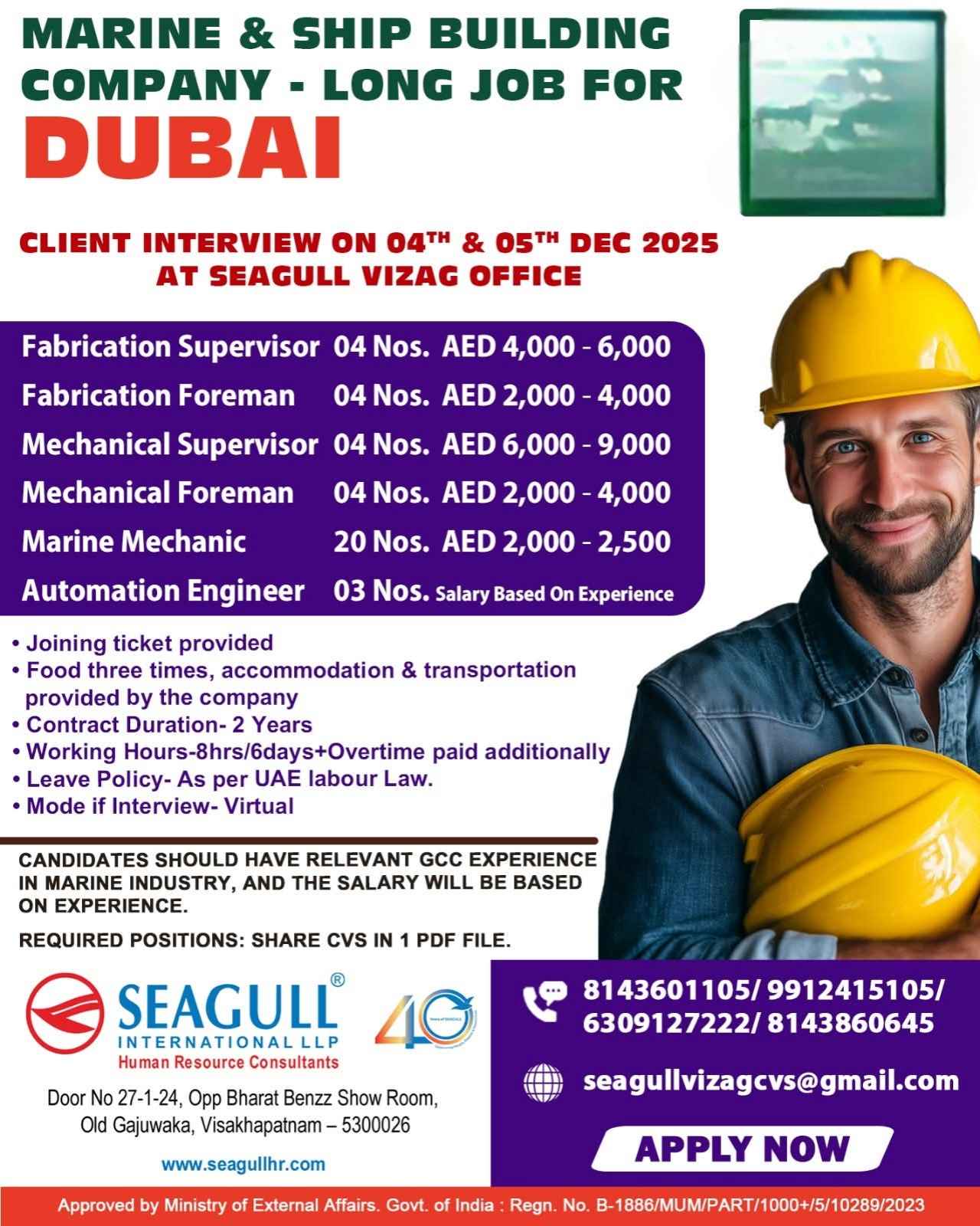URGENT HIRINS FOR DRY DOCKS WORLD DUBAI