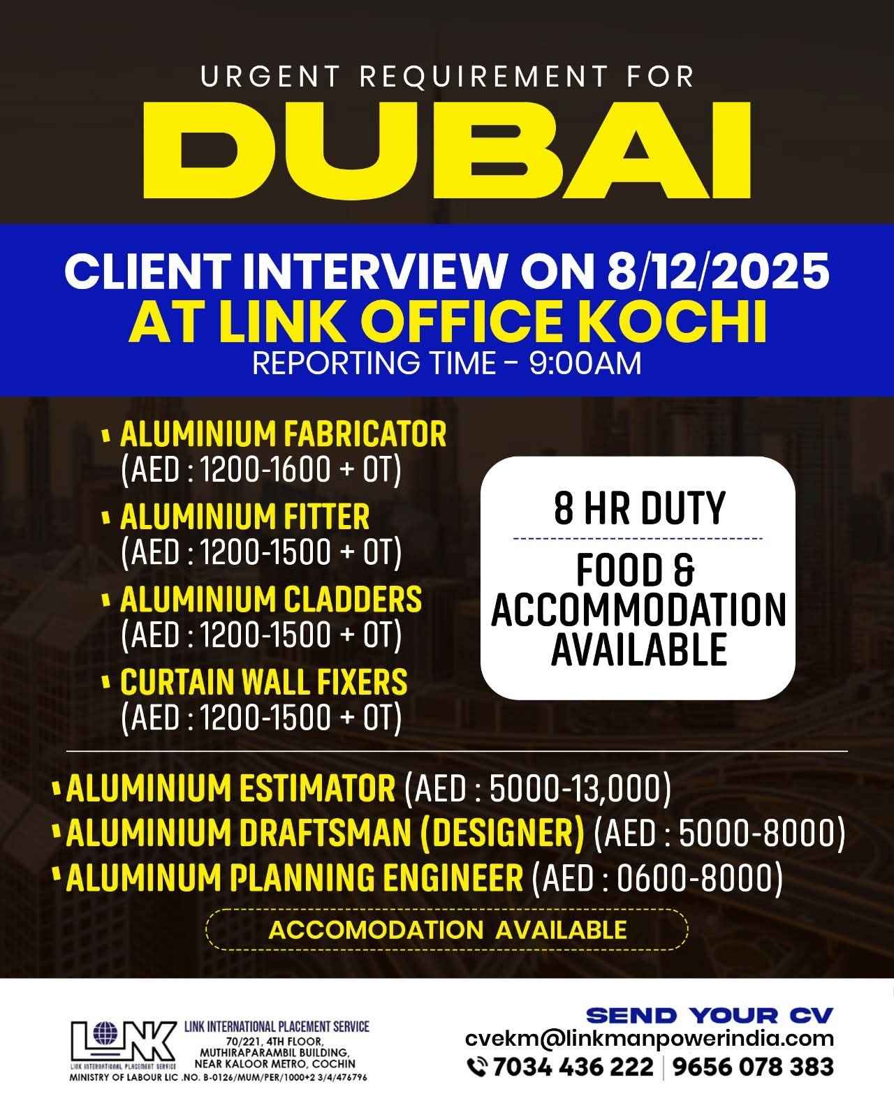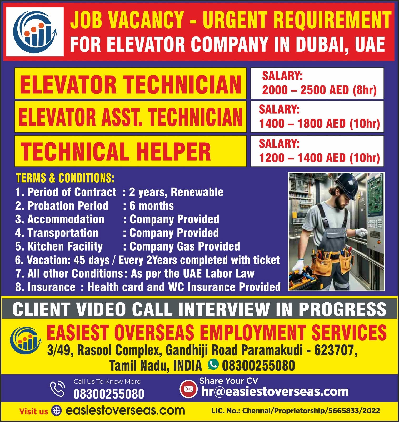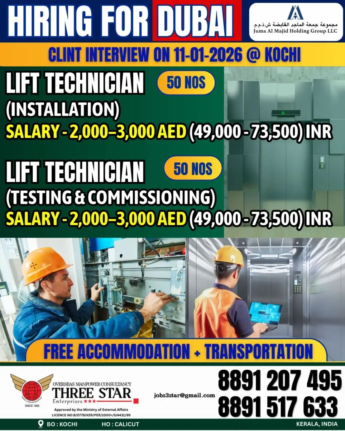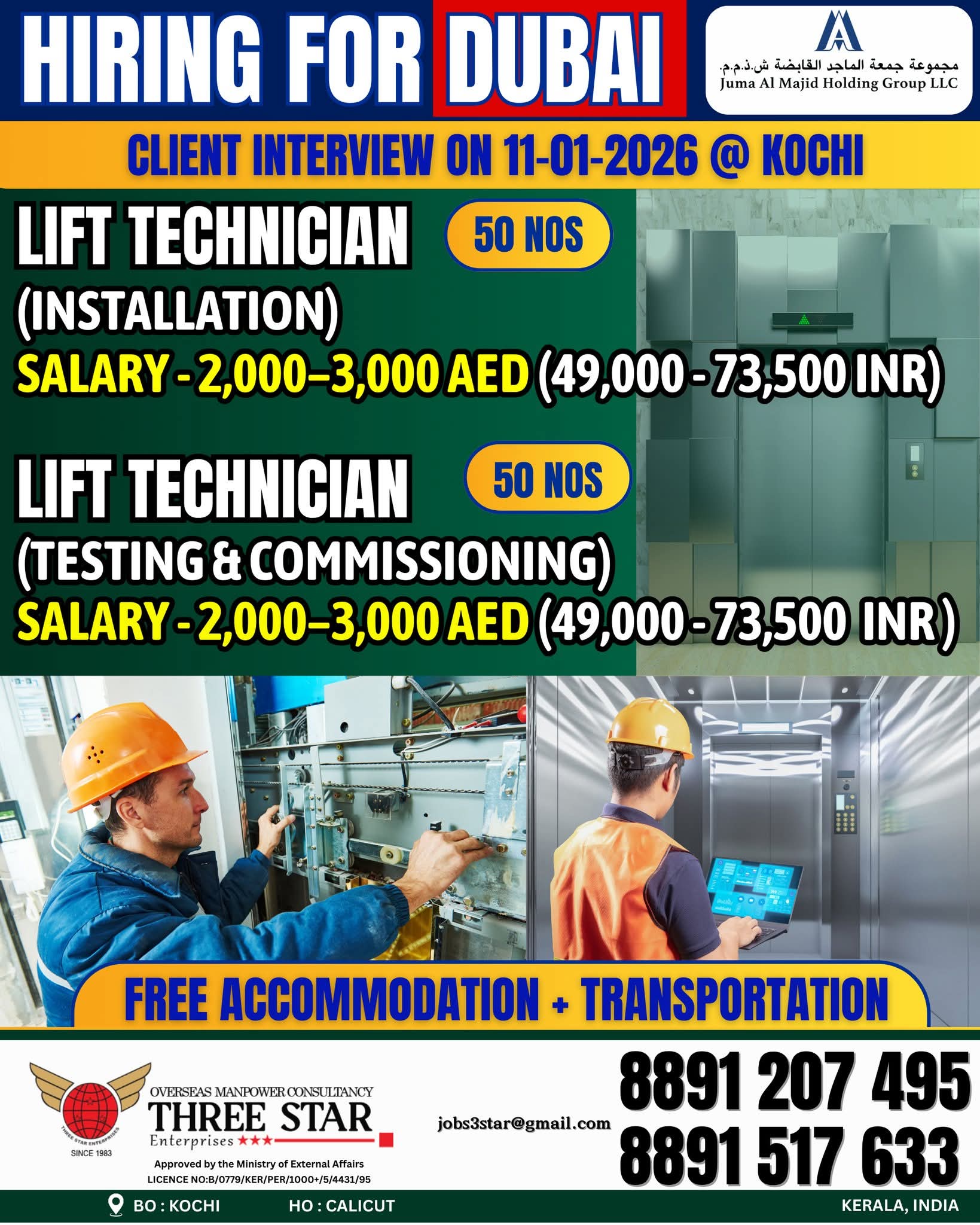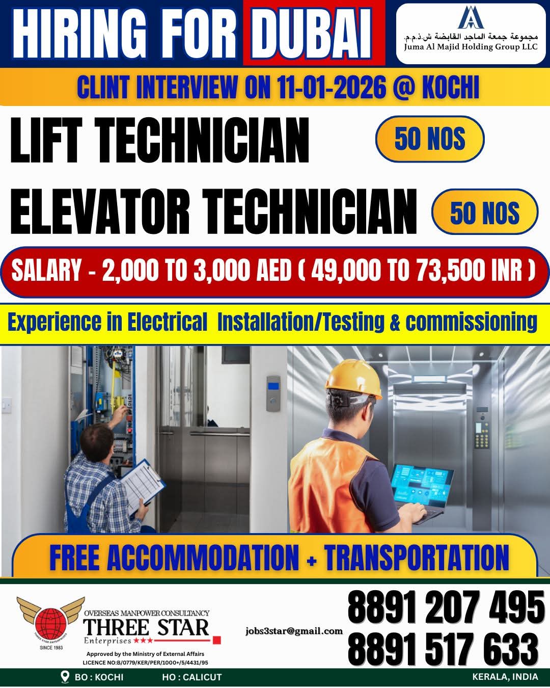 URGENT REQUIREMENT FOR ELEVATOR COMPANY IN DUBAI
