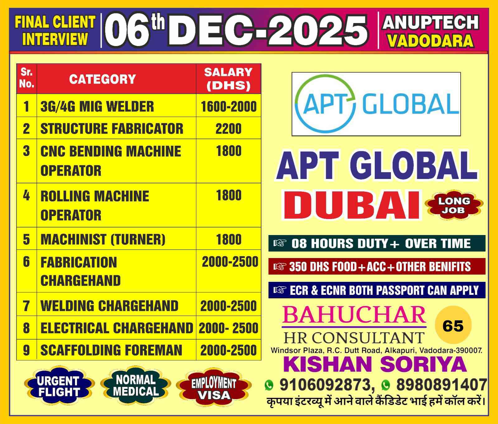 Urgent Requirement For APT GLOBAL DUBAI