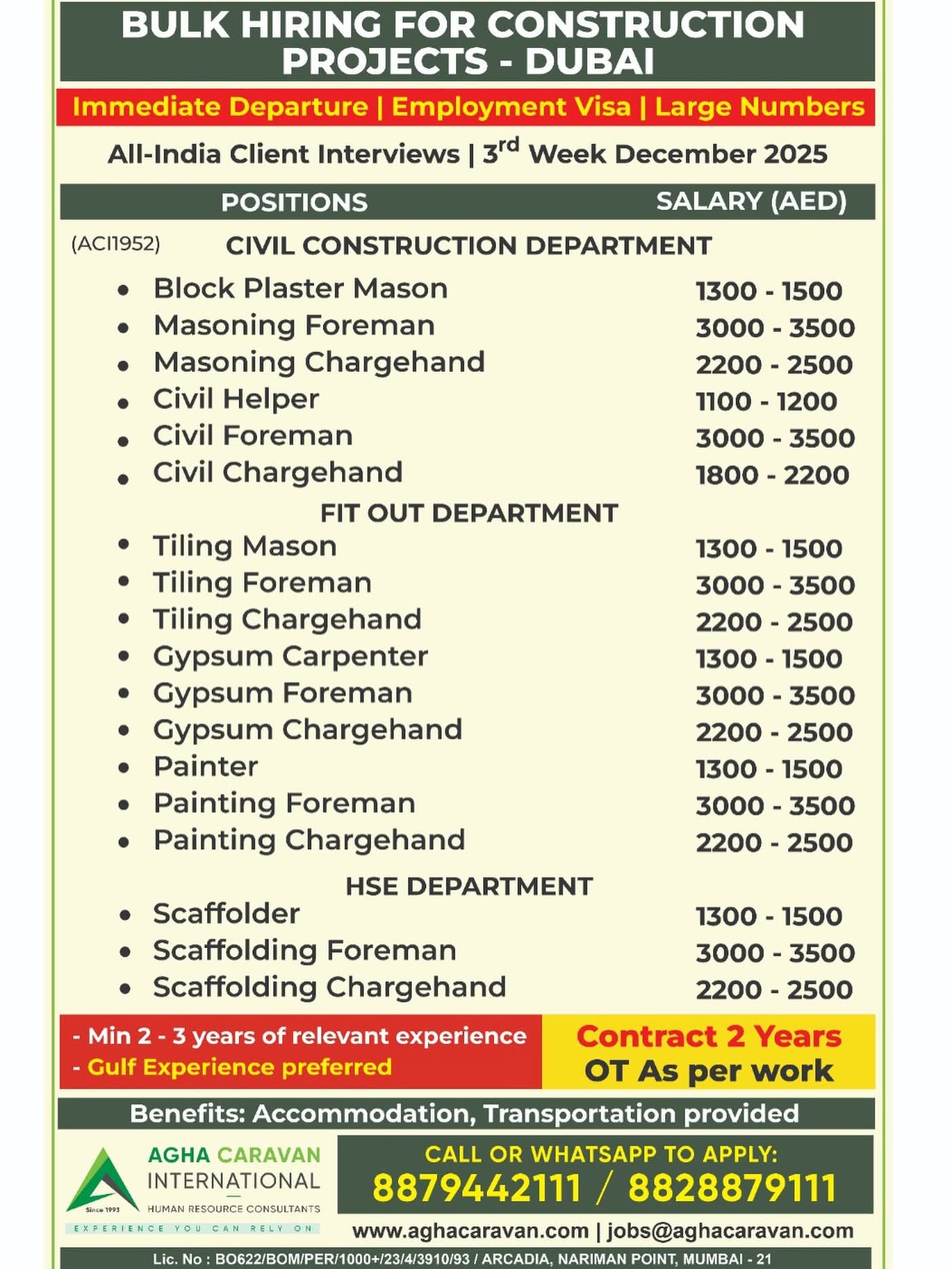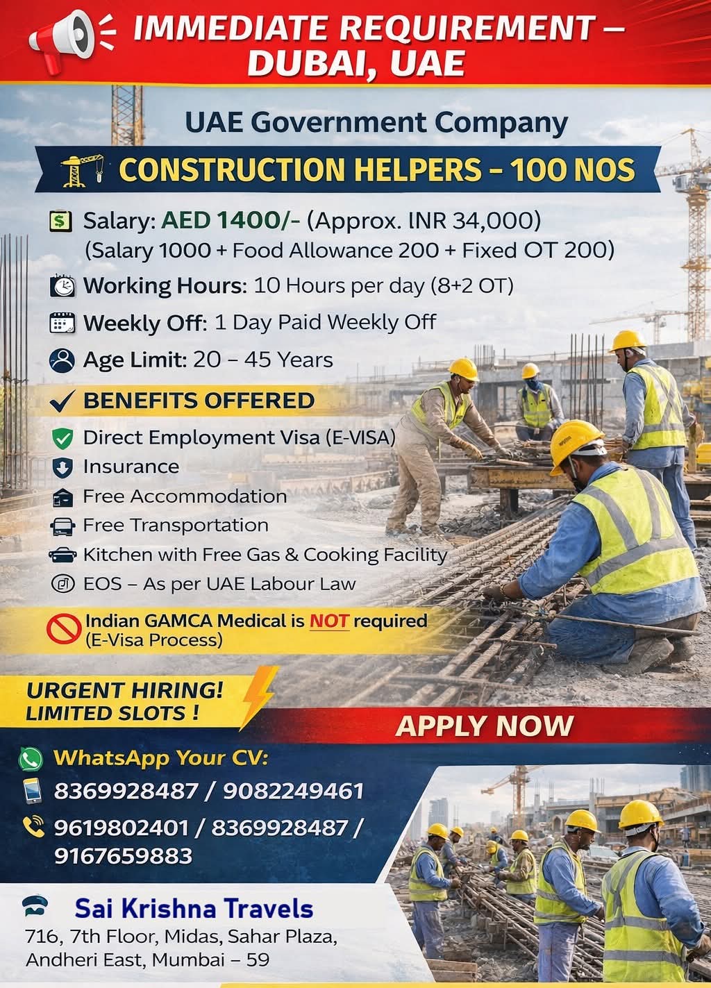 HIRING FOR DUBAI FOR CONSTRUCTION PROJECT