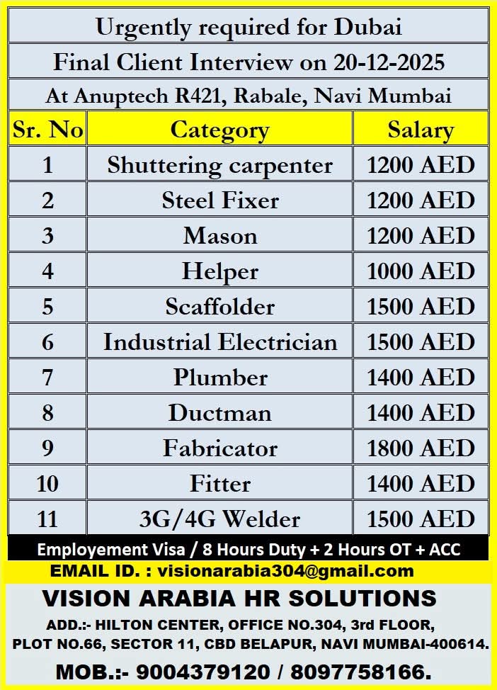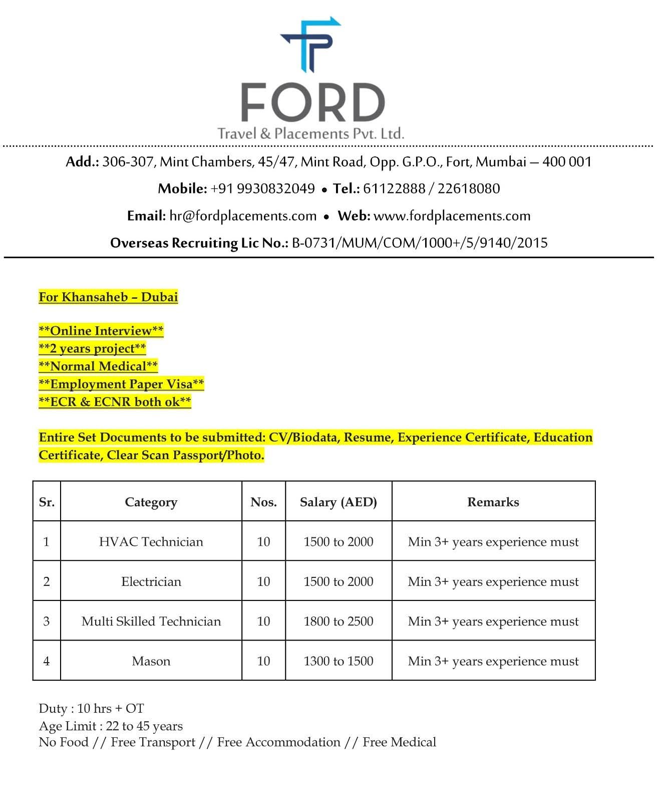URGENT HIRING FOR DUBAI