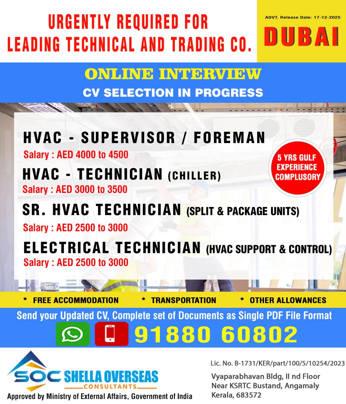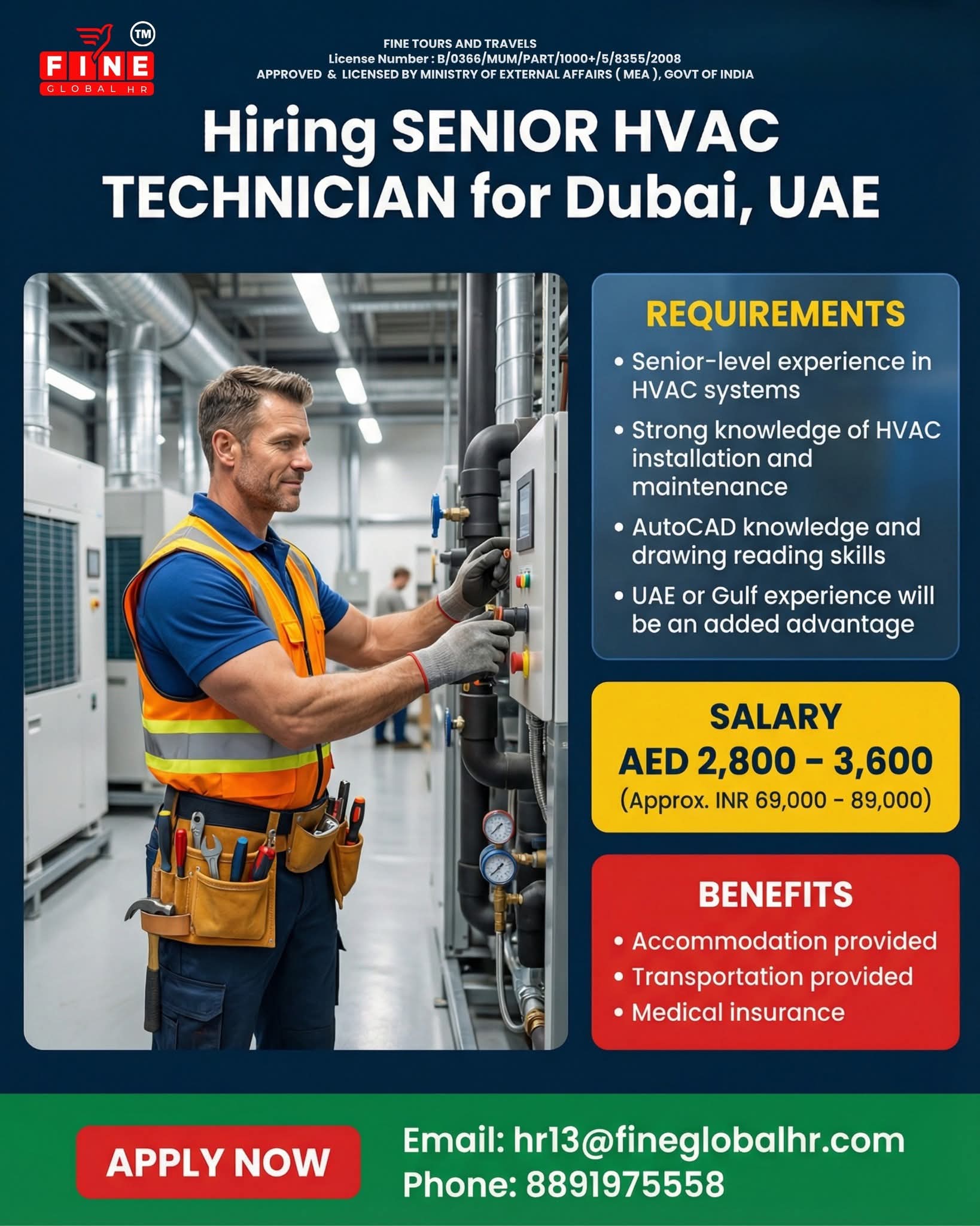 Hiring SENIOR HVAC TECHNICIAN for Dubai