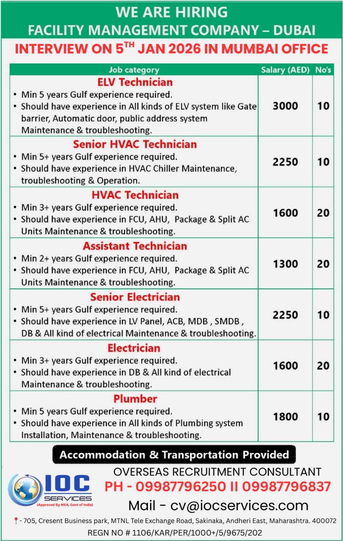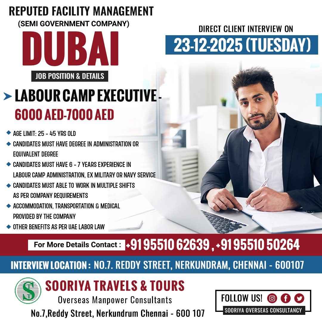 URGENTLY REQUIRED FOR FACILITY MANAGEMENT COMPANY IN Dubai