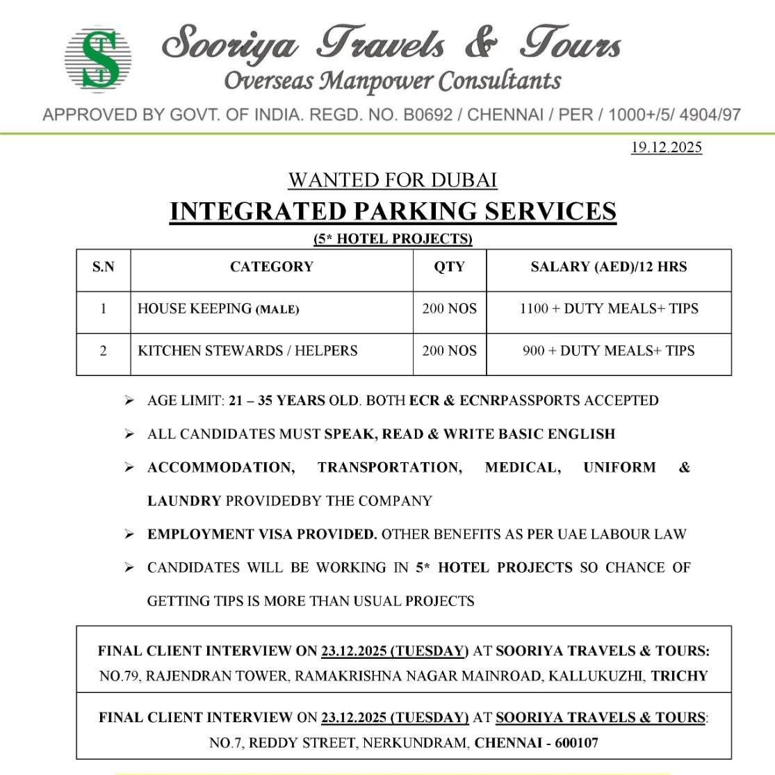RECRUITMENT FOR DUBAI