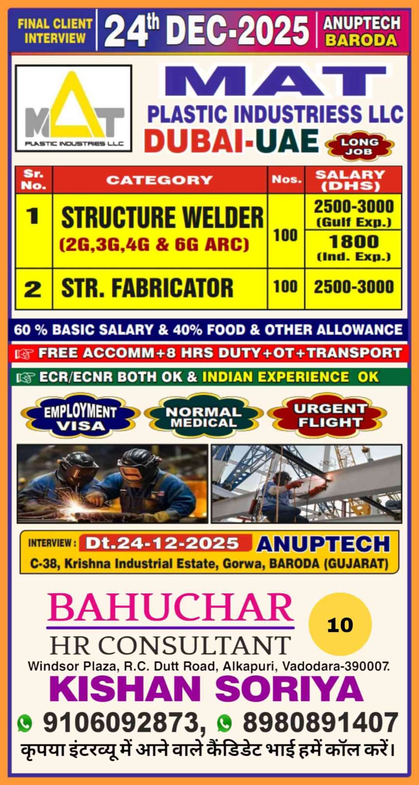 Urgent Requirement For MAT MAT PLASTIC INDUSTRIES LLC PLASTIC INDUSTRIESS LLC DUBAI-UAE