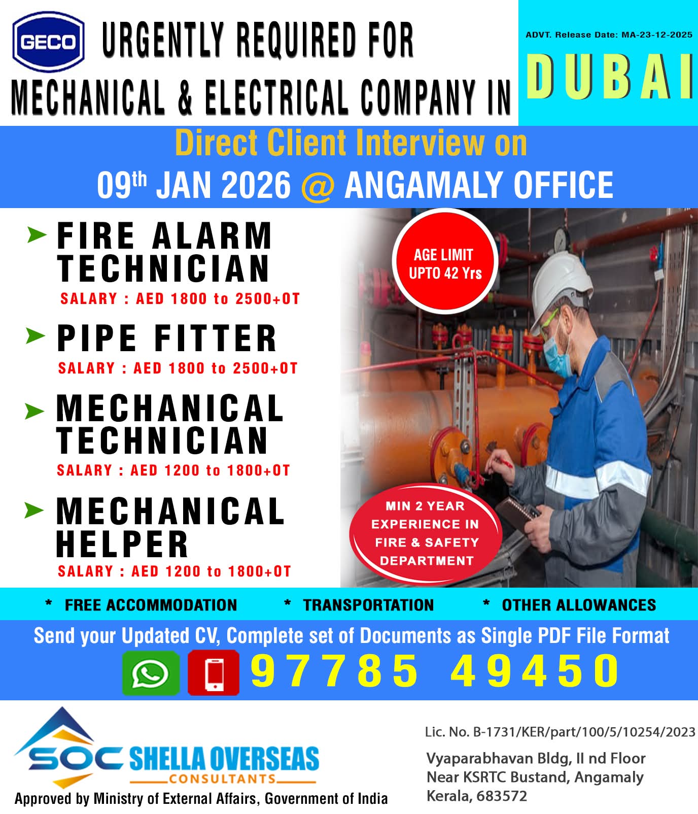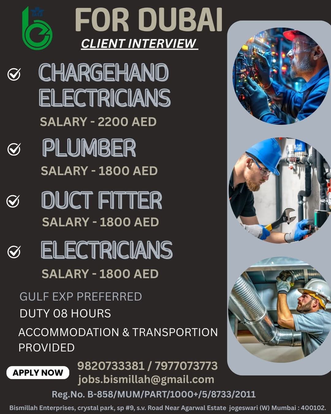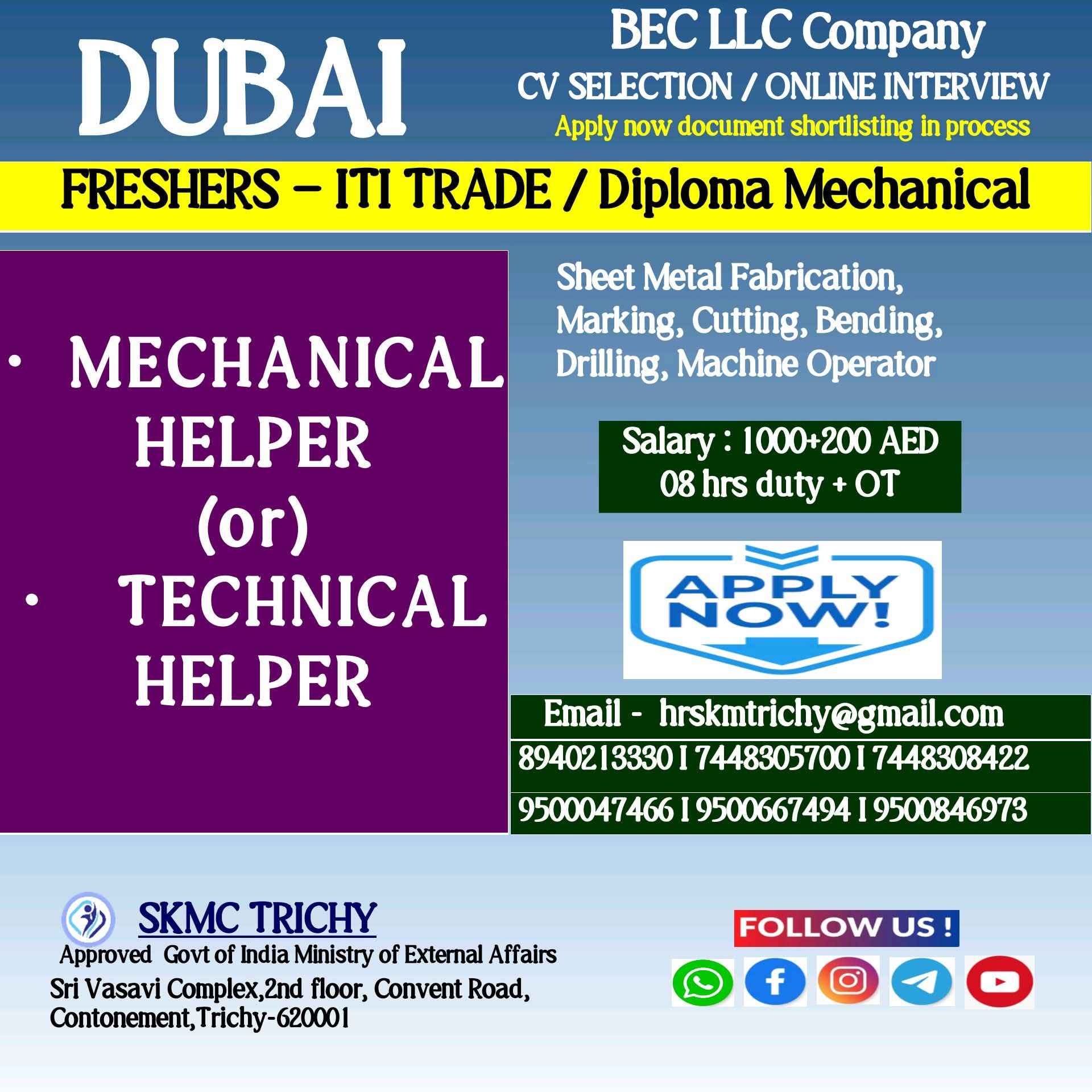 URGENTLY REQUIRED FOR MECHANICAL & ELECTRICAL COMPANY IN Dubai
