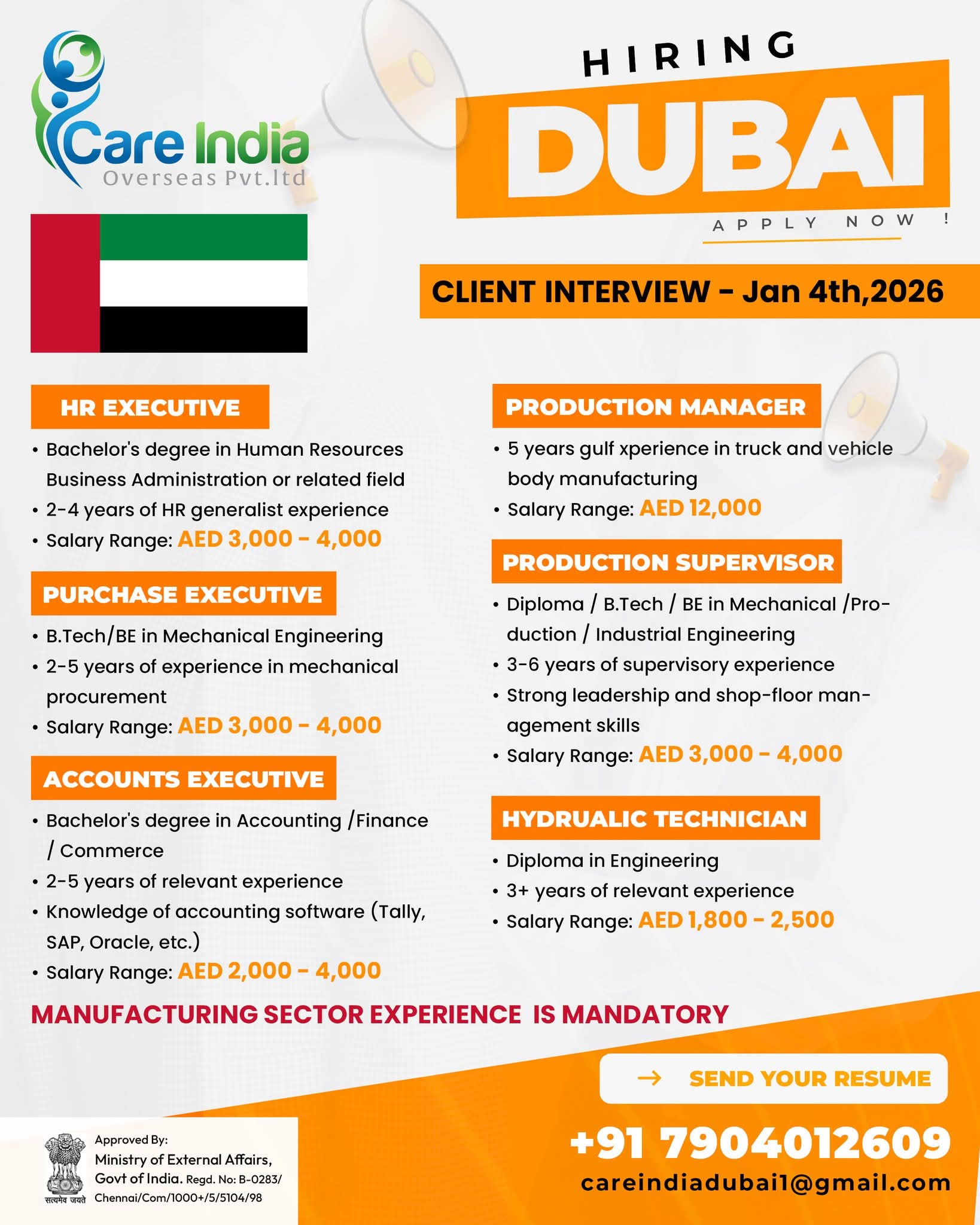 URGENT REQUIREMENTS FOR UAE
