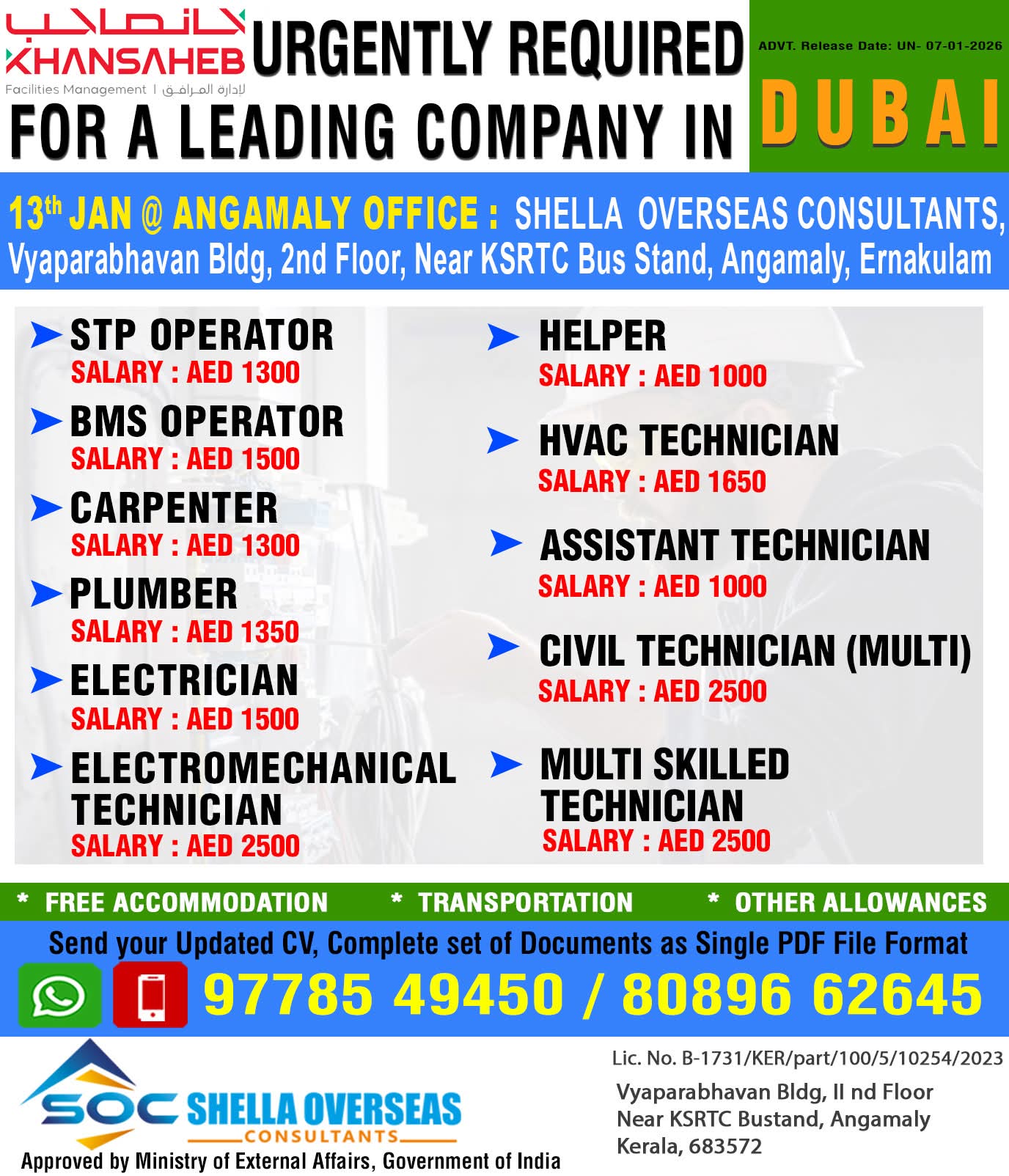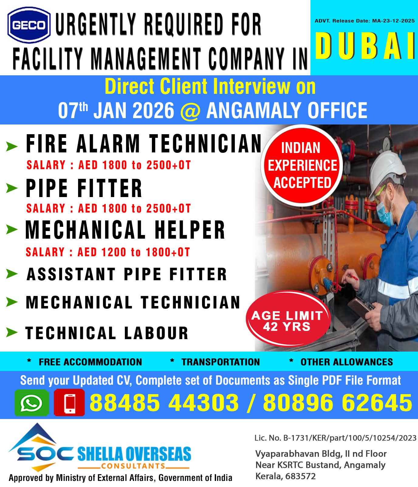 URGENT REQUIREMENT For a Leading Technical and Trading Company for their Facility Management Division in Dubai, UAE