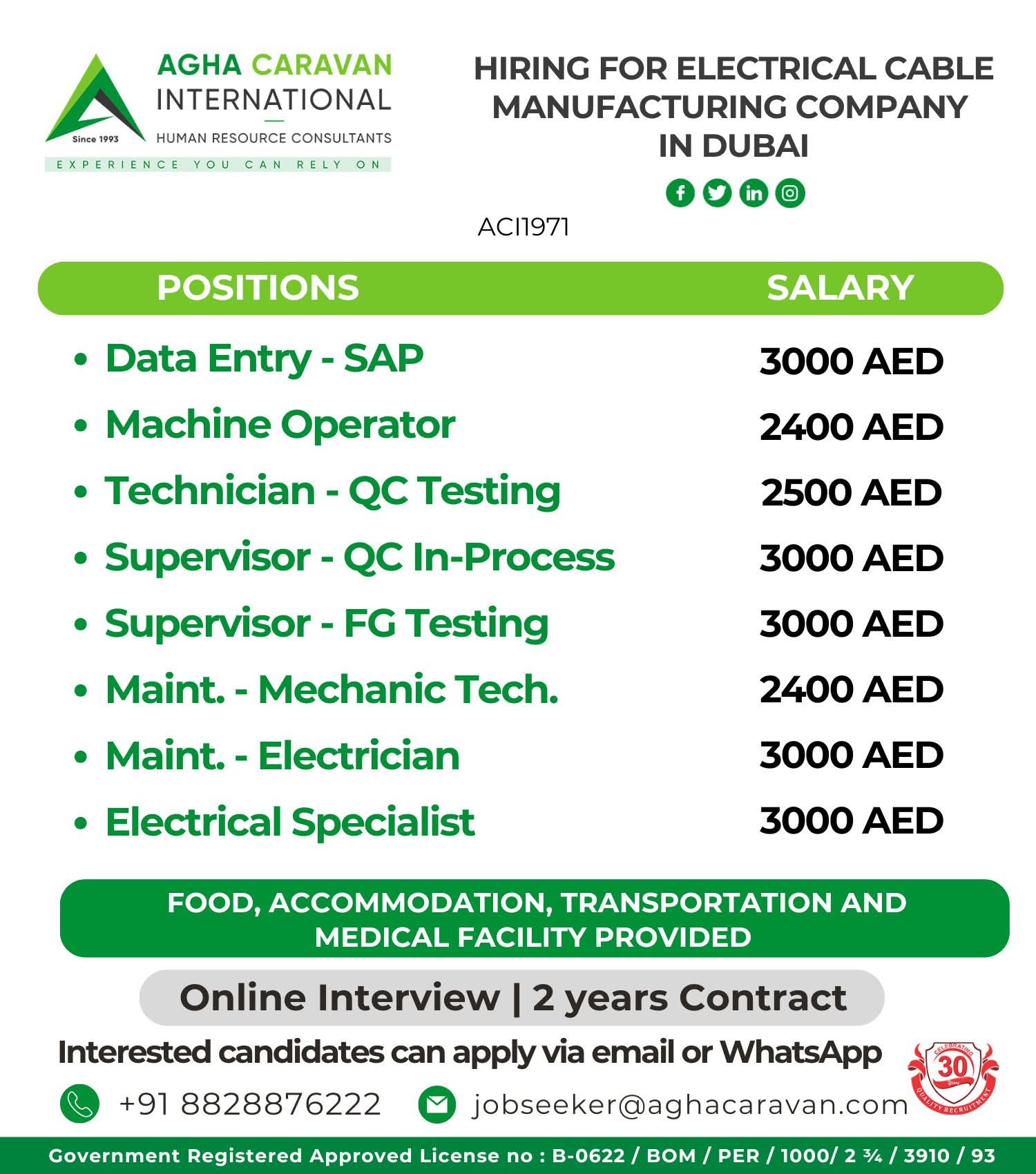 HIRING FOR ELECTRICAL CABLE MANUFACTURING COMPANY IN DUBAI