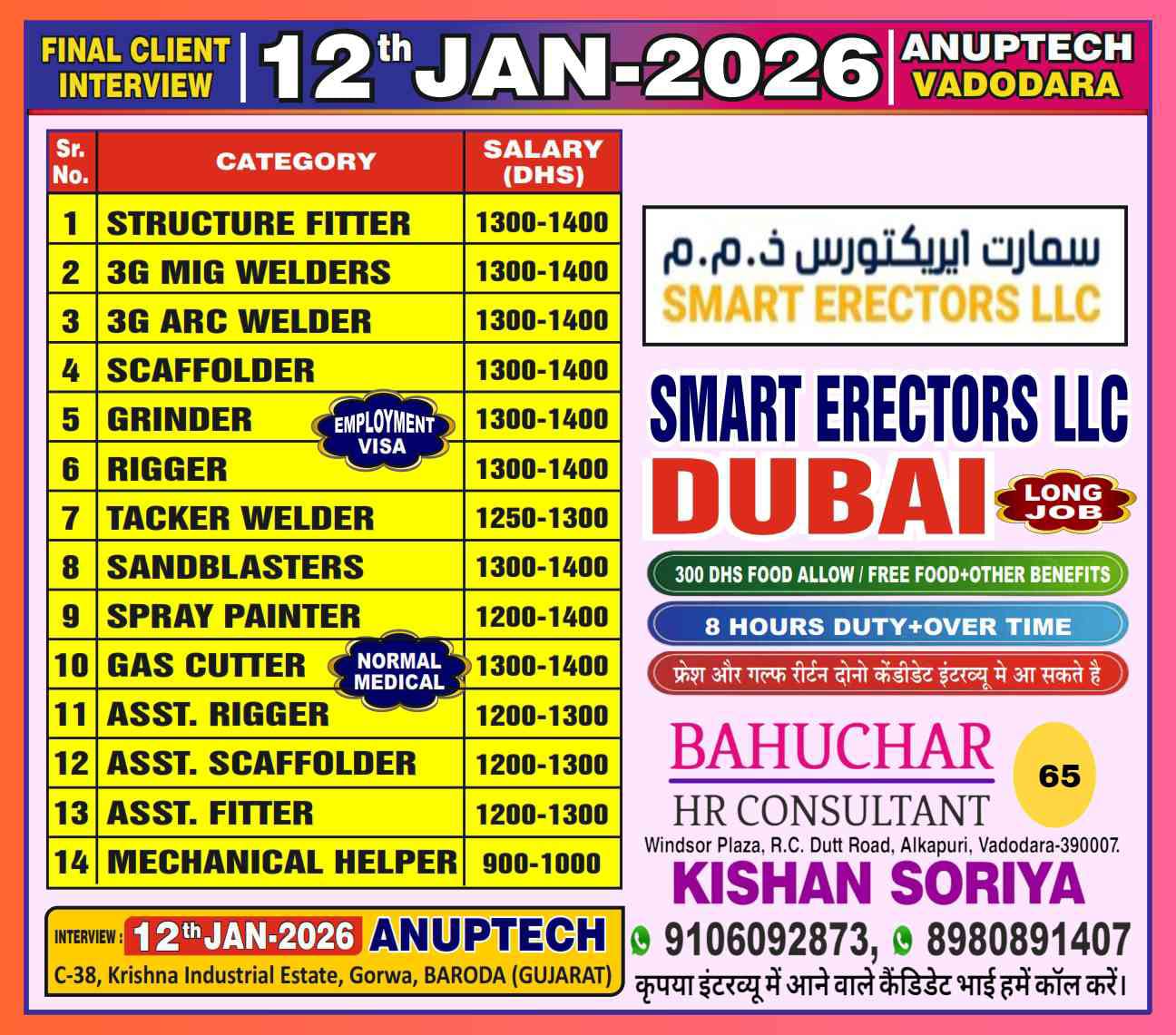 Urgent Requirement For SMART ERECTORS LLC DUBAI
