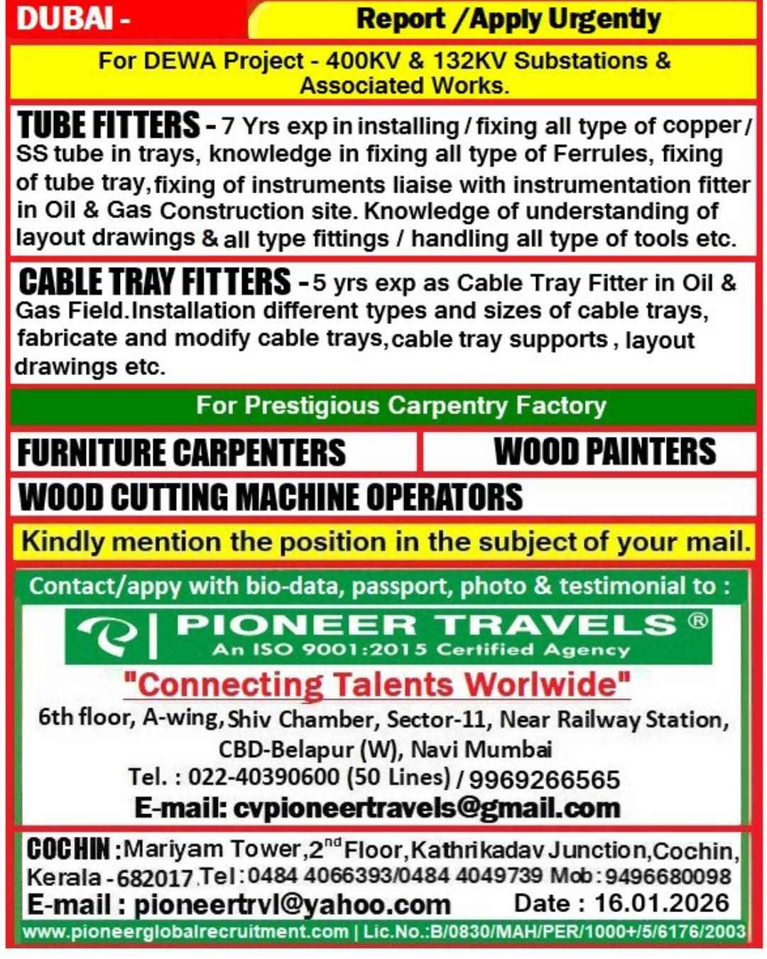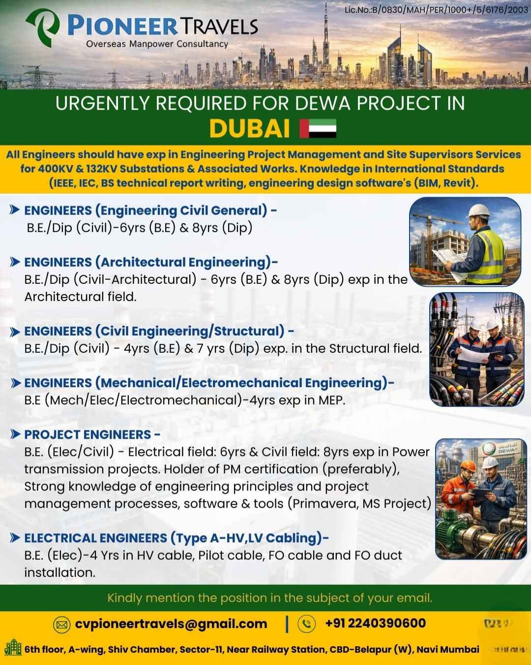 URGENTLY REQUIRED FOR DEWA PROJECT IN DUBAI
