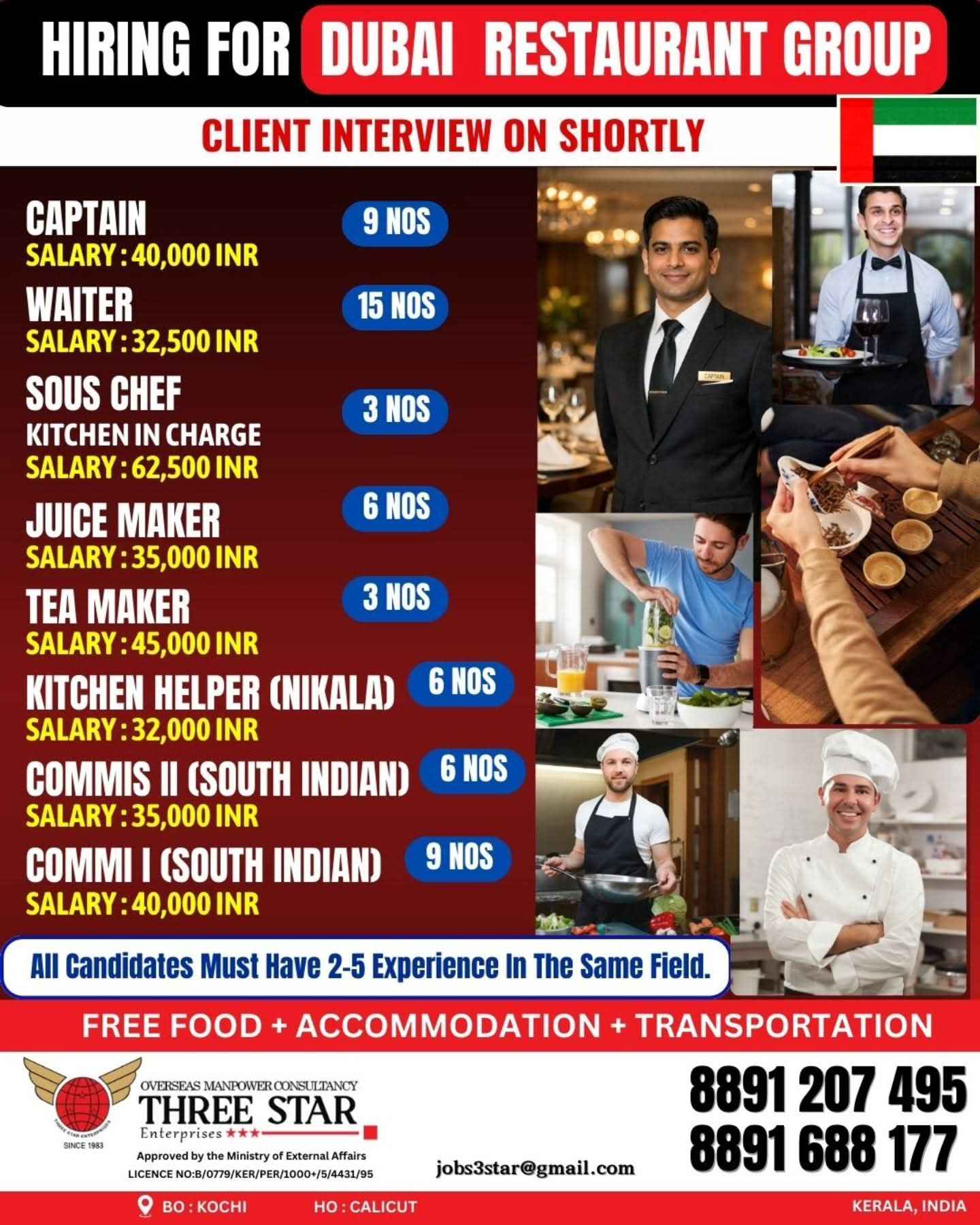 HIRING FOR DUBAI RESTAURANT GROUP
