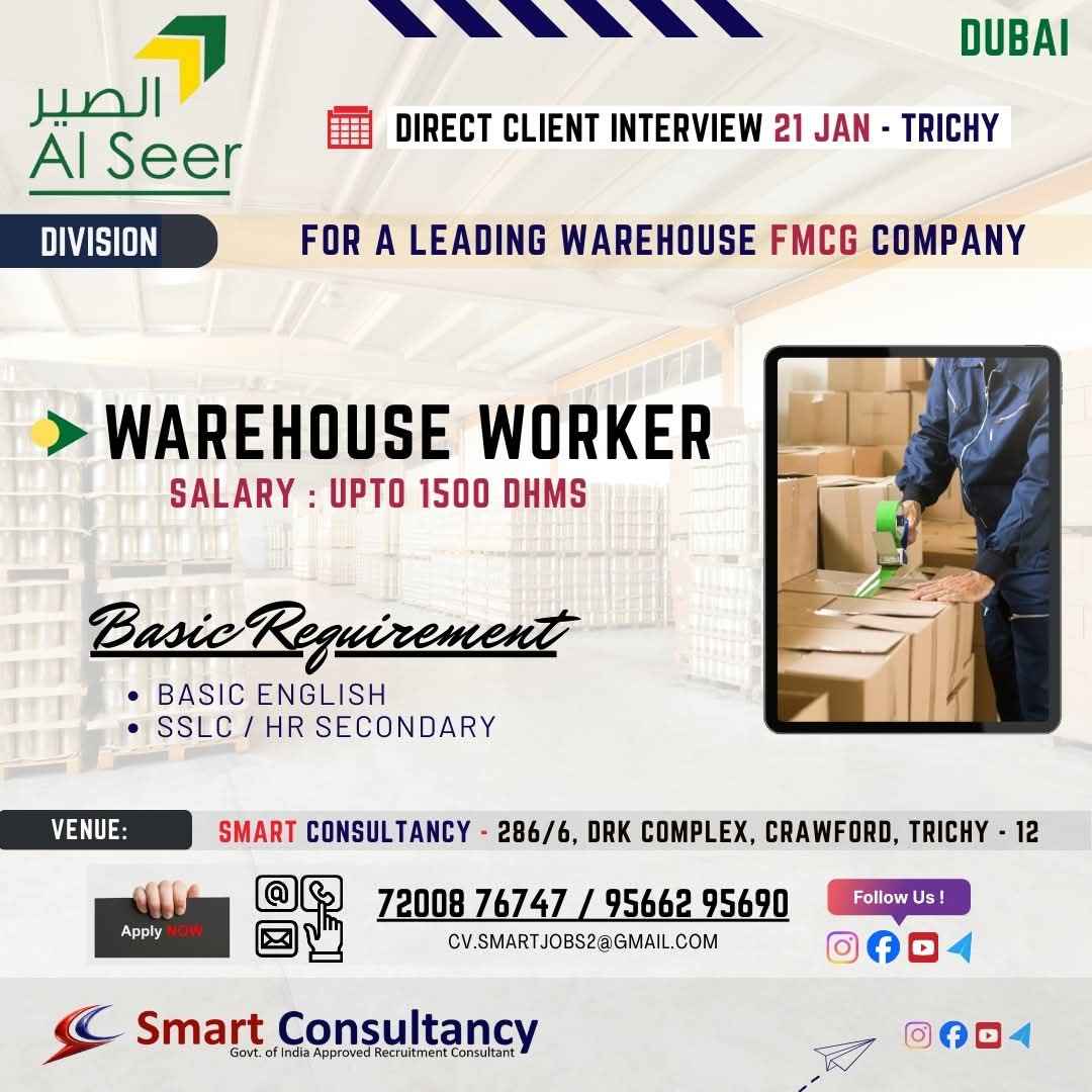 URGENTLY REQUIRED FOR A LEADING LOGISTICS WAREHOUSE COMPANY FOR THEIR OPERATIONS IN DUBAI